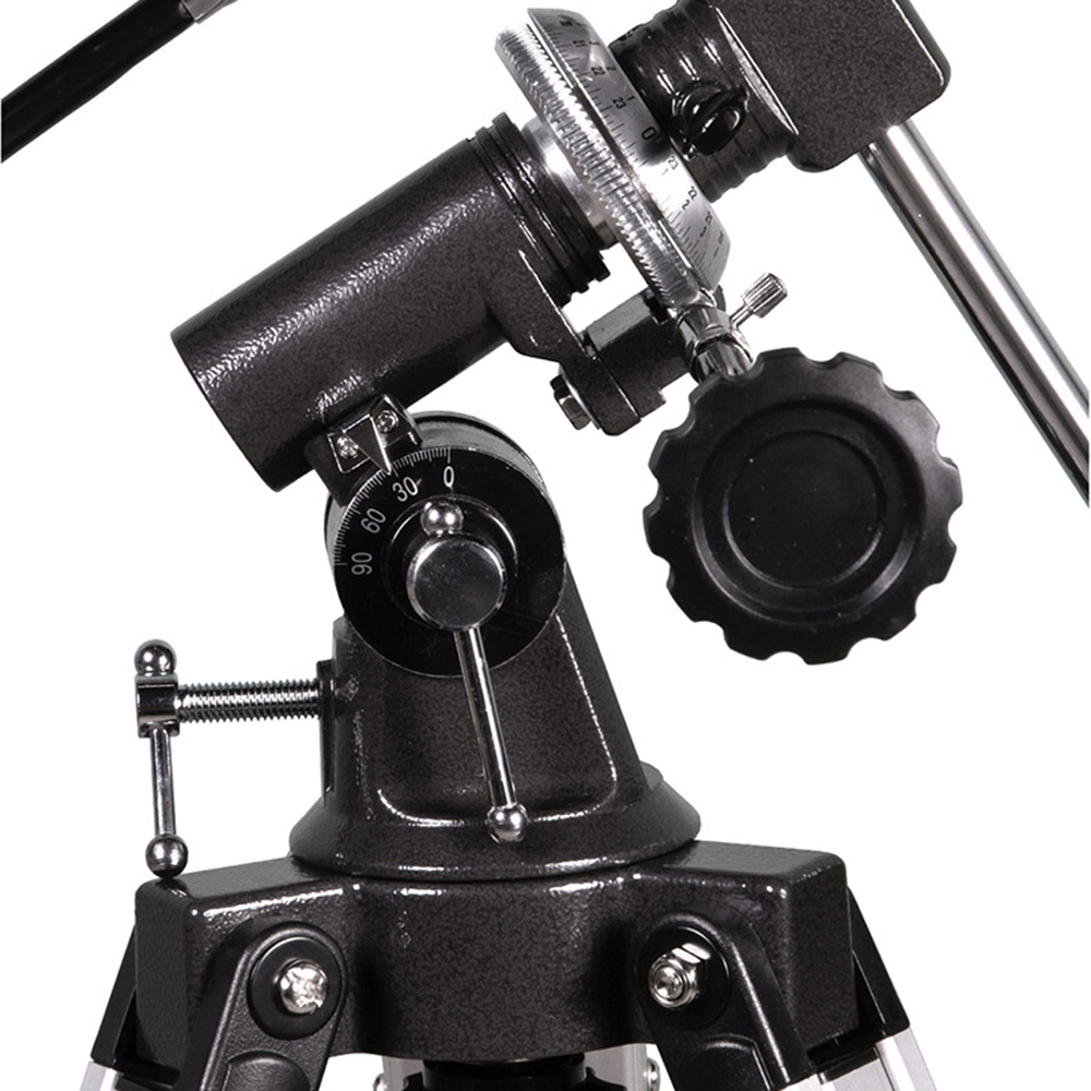 Sky-Watcher BK 709EQ1 поставляється з екваторіальним монтуванням німецького типу EQ1. Цей тип монтування найкраще підходить для астроспостережень і астрофотографії, погано підходить для наземних спостережень. Перед використанням знадобиться початкове налаштування полярної осі і балансування оптичної труби. Проте потім ви зможете легко наводитися на космічні об'єкти і вести їх по зоряному небу. Монтування має два координатних диска і дві ручки тонкої підводки для великих і середніх збільшень. Це буде корисно для компенсації добового переміщення Землі.