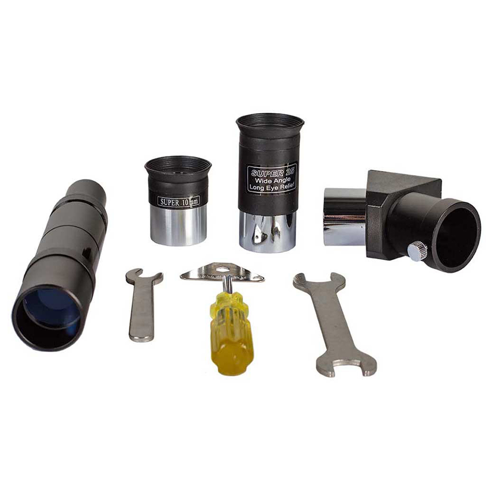 Оптична труба телескопа Sky-Watcher BK 909AZ3 (BK909AZ3) має дуже просту і надійну конструкцію, що складається з об'єктива і фокусера. Робочий діаметр лінз становить 90 мм, а фокусна відстань — 900 мм. Такі параметри дають світлосилу 10 і проникність більше 12 зоряних величин. Цього цілком достатньо, щоб вивчити поверхню супутника Землі до дрібниць. Ви легко розрізните Місячні ландшафти: моря, кратери, гори. При використанні допоміжних аксесуарів навіть можна зробити кілька астрознімків Місячної поверхні. До перегляду будуть доступні і інші небесні тіла: планети-гіганти Юпітер і Сатурн; фази Меркурія і Венери; Нептун і Уран з помітними кольоровими дисками. Щоб отримати максимум можливостей оптики, рекомендуємо оснастити телескоп окулярами 6-7 мм.