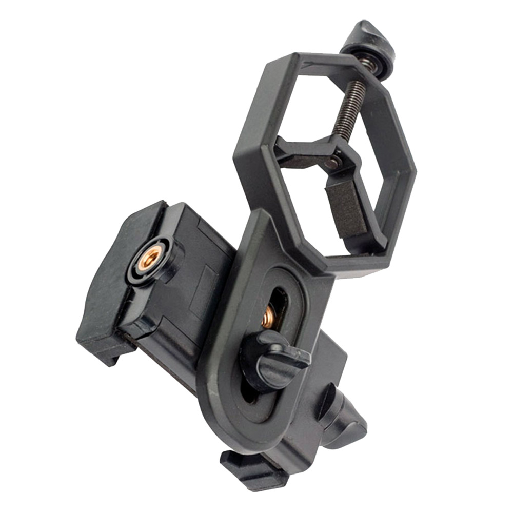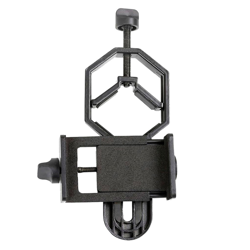 Смартфон-адаптер закріплюється на окулярі оптичного приладу за допомогою хомута. Внутрішній діаметр затискного хомута регулюється в інтервалі 26-48 мм. Переконайтеся, що діаметр окуляра оптичного приладу знаходиться в цих межах. До речі, затиск хомута утримується не пружиною, як у простіших моделях, а надійним металевим гвинтом.