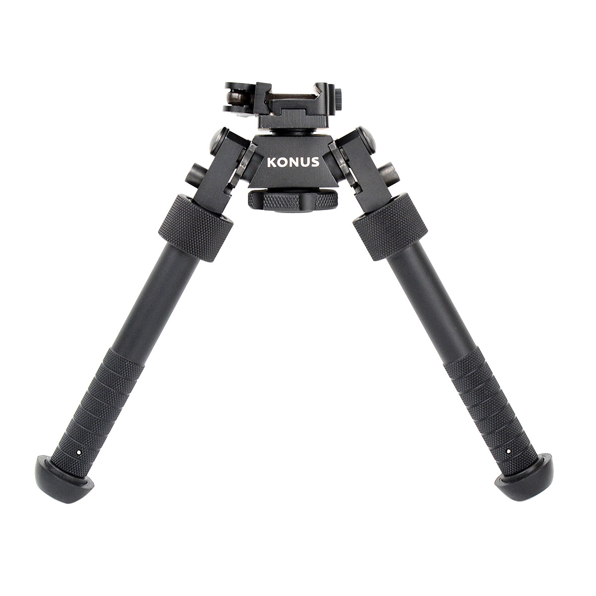KONUS BIPOD-T – це компактні двосекційні сошки для кріплення на планку Weaver/Picatinny за допомогою шарнірного кронштейна з Quick Detach. Ніжки мають п'ять фіксованих положень довжини, а також п'ять фіксованих кутів складання вперед-назад. Це забезпечує діапазон робочої висоти від 12 до 23 см. Обертання кріпильного кронштейна відносно вертикальної осі можливе на 360°.