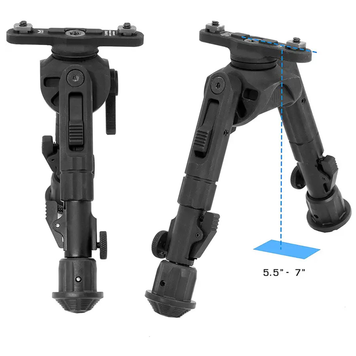 Конструкція сошок виконана з авіаційного алюмінієвого сплаву 6061-T6 — легкого, але міцного матеріалу, що витримує великі навантаження. Матовий анодований чорний фініш захищає поверхню від подряпин, корозії та блиску, зберігаючи тактичну непомітність та естетичний вигляд виробу. Загальна вага сошок становить 252 г, роблячи їх міцними, але не перевантажуючи зброю — ідеальний баланс між надійністю та мобільністю.