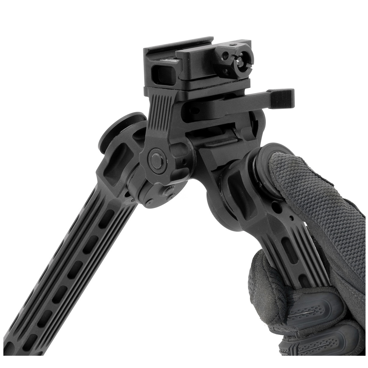 Сошка має трипозиційні ніжки, які можуть фіксуватися під кутами 0°, 45° та 90°. Це дозволяє стрільцю швидко адаптуватися до різних стрілецьких ситуацій, забезпечуючи максимальну стабільність у будь-якому положенні. Крім того, ніжки мають кут розкриття 70°, що забезпечує широку опору для ще більшої стійкості зброї під час пострілу, та поворотні підніжки, які автоматично підлаштовуються під нерівну поверхню.