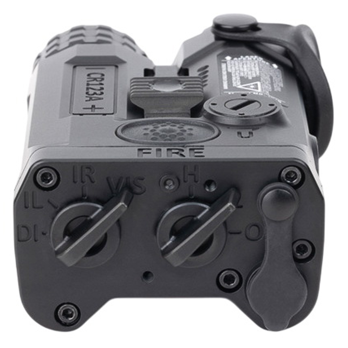 На задній частині блоку розміщено інтуїтивно зрозумілий перемикач, який дає змогу оперативно обирати бажану комбінацію лазерів або ІЧ-освітлювача та рівень їхньої інтенсивності. Це забезпечує просте та швидке керування всіма можливостями пристрою навіть у складних тактичних ситуаціях. Зручна ергономічна кнопка активації розташована на верхній панелі корпусу, дозволяючи легко перемикатися між короткочасним і постійним режимами роботи одним натисканням — без зміни хвата.