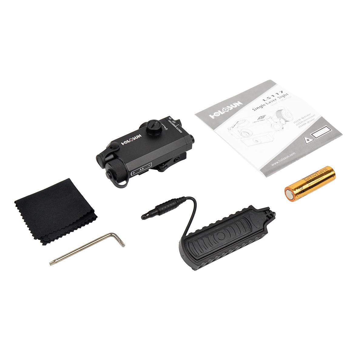 Holosun LS117-GR (LS117G) — це легкий та компактний лазерний цілевказівник, призначений для полегшення прицільного вогню на дистанціях 25 - 100 метрів. Пристрій ідеально проявить себе в несприятливих навколишніх умовах, таких як туман, задимлення, димові завіси тощо, коли традиційне наведення на ціль ускладнюється. Лазерне випромінювання зеленого кольору з довжиною хвилі 520 нм має максимальну потужність 5 мВт та відповідає класу IIIa.
