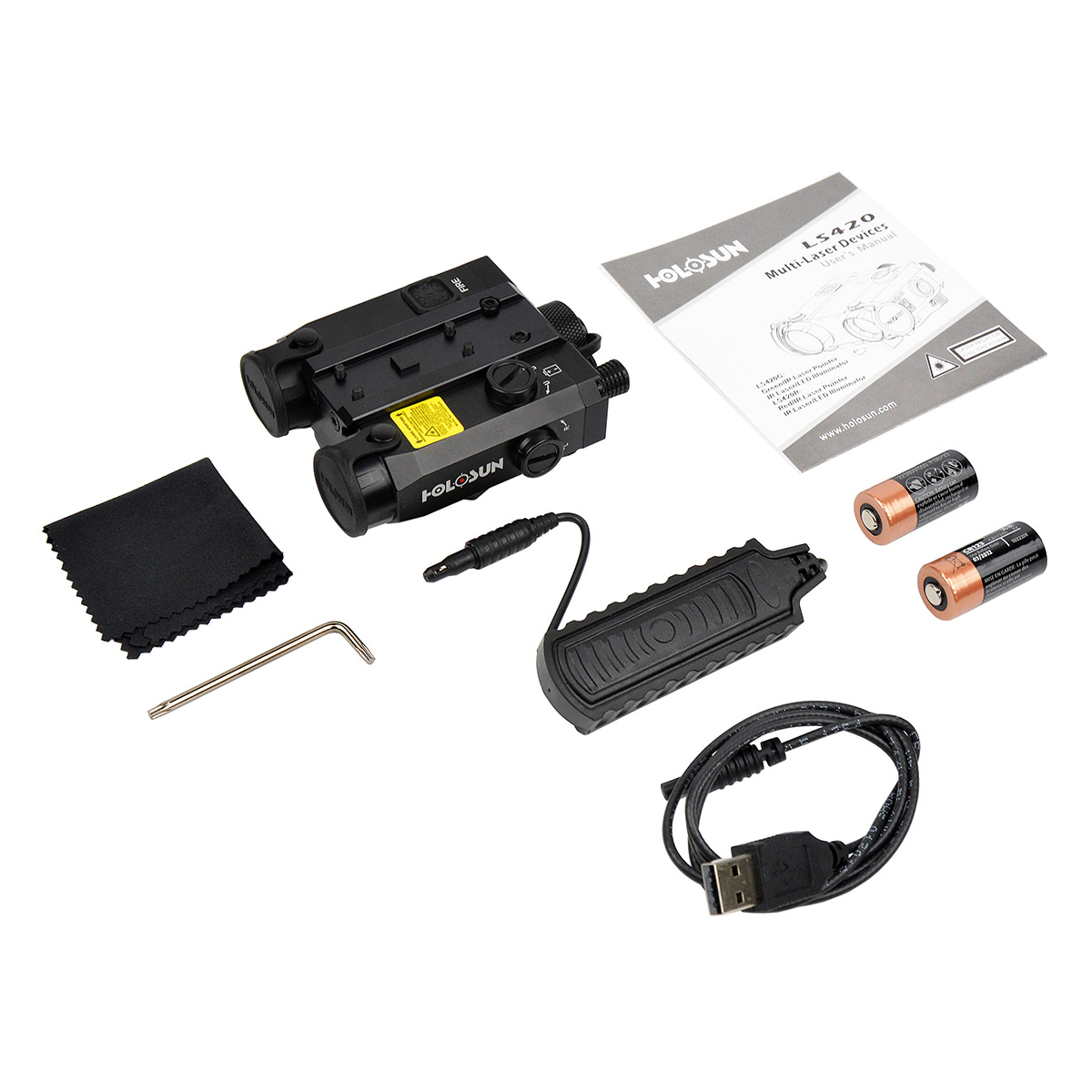 Holosun LS420-RD (LS420R) – це мультирежимний тактичний блок з лазерним цілевказівником, ІЧ-вказівником, ІЧ-освітлювачем та потужним LED-ліхтариком на 800 lm. Модель пропонує дев'ять режимів роботи, які полегшують та прискорюють прицілювання за різних сценаріїв стрільби. Невидимі для неозброєного ока ІЧ-режими дозволяють працювати у спеціальних тактичних окулярах. Видиме лазерне випромінювання червоного кольору з довжиною хвилі 635 нм має максимальну потужність 5 мВт та відповідає класу IIIа.
