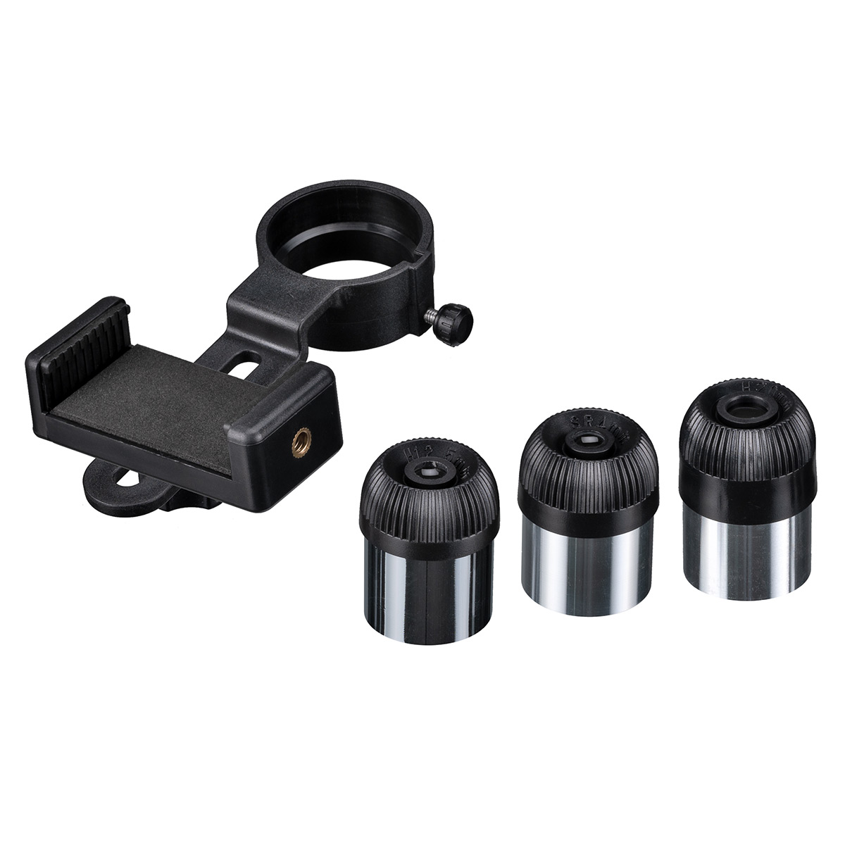 Шанувальникам спостережень Місяця буде корисним використання місячного фільтра. Варто просто вкрутити його у задню частину окуляра, він зменшить відблиски та підвищить контрастність, дозволяючи насолоджуватися місячними пейзажами без засліплення. У базовому комплекті також присутній адаптер для смартфона, що дозволяє робити фото та знімати відео з допомогою камери гаджета, а потім ділитися своїми астрономічними відкриттями з родиною, друзями чи у соціальних мережах.