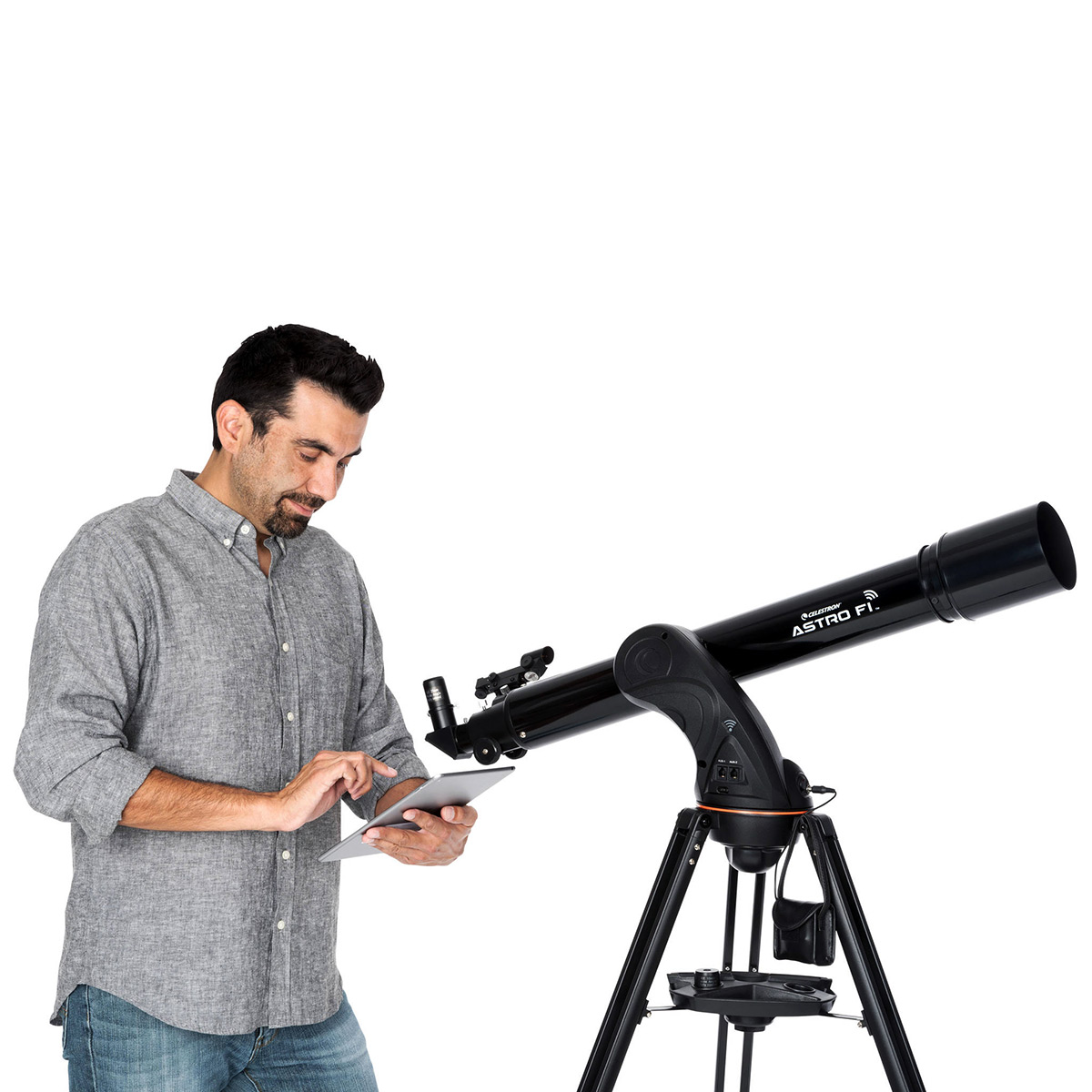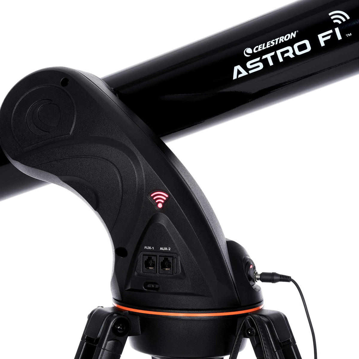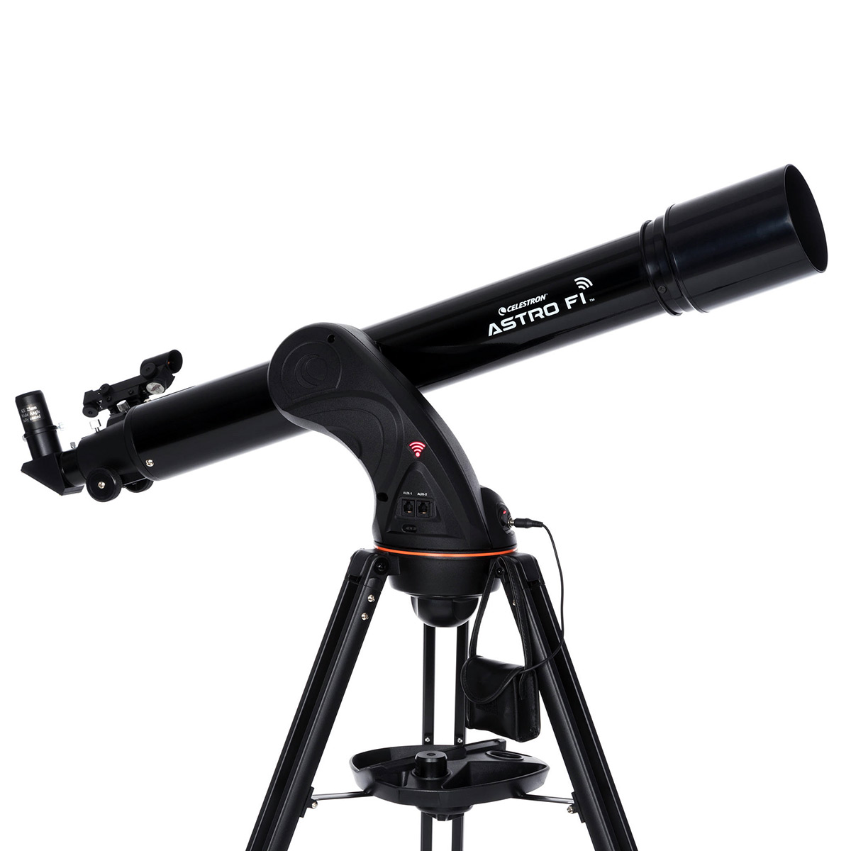 Телескоп Celestron Astro Fi 90 — це довгофокусний рефрактор-ахромат на комп’ютеризованому азимутальному монтуванні з бездротовою системою керування. Належить до популярної серії Astro Fi від бренду Celestron, яка вирізняється вбудованим WiFi-модулем для керування телескопом зі смартфона або планшета за допомогою безкоштовного мобільного додатку SkyPortal, революційною технологією вирівнювання SkyAlign та інтегрованим в кришку об’єктива адаптером для смартфона.