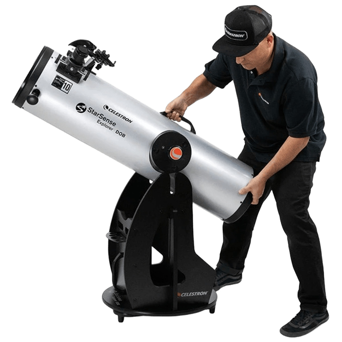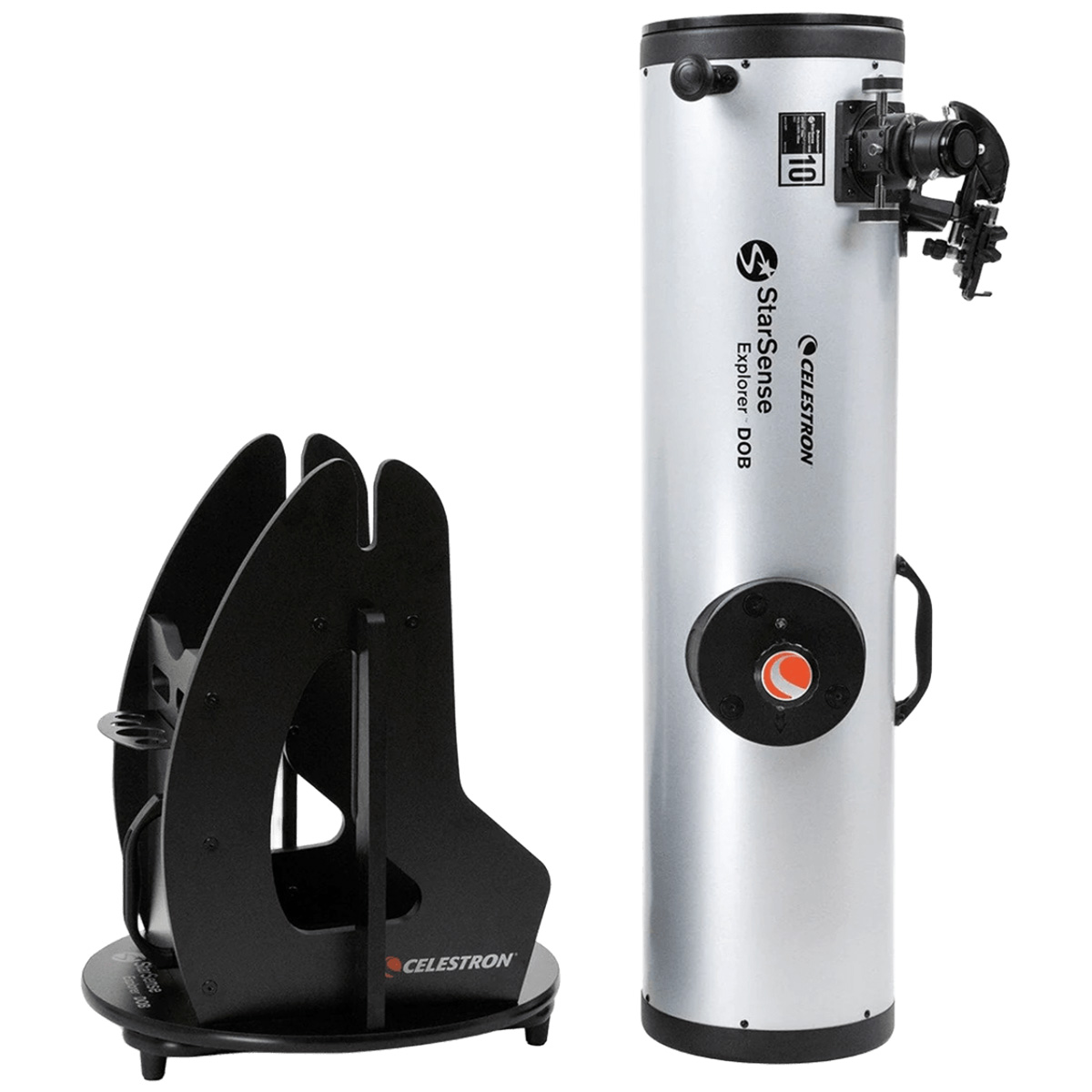 Телескоп Celestron StarSense Explorer 10" Dobsonian — потужний рефлектор Ньютона з великою апертурою 254 мм та фокусною відстанню 1200 мм на надстійкому монтуванні Добсона, модель вирізняється підтримкою керування через мобільний застосунок. Завдяки запатентованій технології StarSense Explorer, яка за допомогою смартфона аналізує нічне небо і визначає положення телескопа в реальному часі, застосунок підказує напрямок руху для точного наведення на об’єкти. Це робить спостереження доступними навіть для користувачів без досвіду, створюючи відчуття роботи з персональним гідом по зоряному небу. Водночас велика апертура забезпечує яскраві та деталізовані зображення й дозволяє телескопу залишатися актуальним інструментом і для досвідчених астрономів-аматорів, які очікують максимум можливостей від візуальних спостережень.
