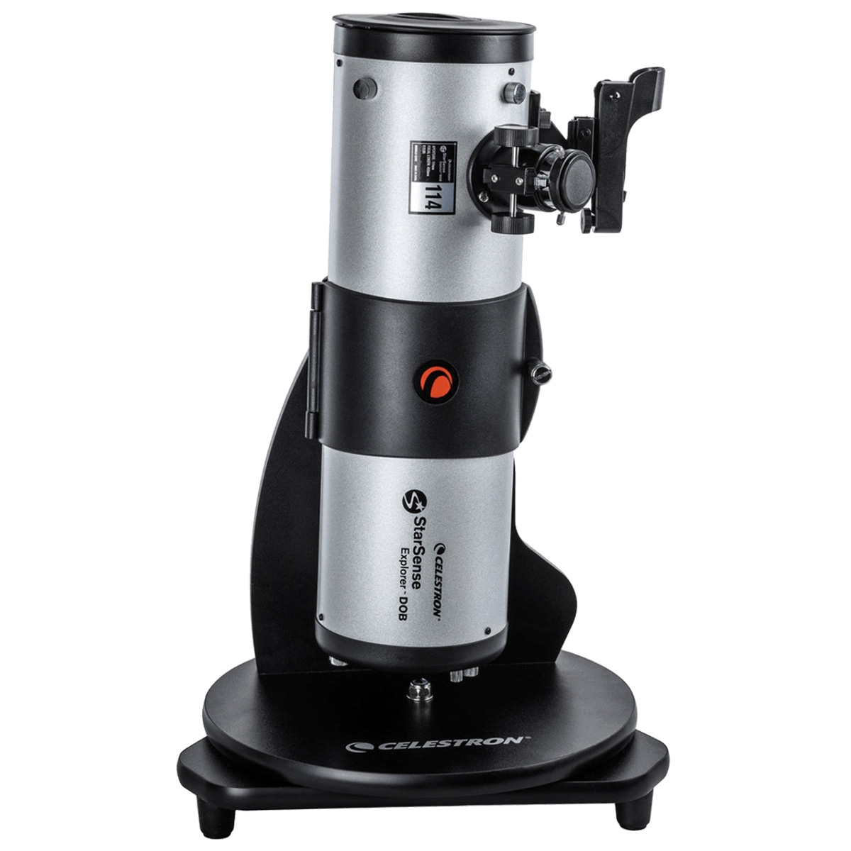 Телескоп Celestron StarSense Explorer 114 mm Dobsonian — це рефлектор Ньютона з апертурою 114 мм та фокусною відстанню 450 мм на стабільному монтуванні Добсона. Модель вирізняється підтримкою керування через мобільний застосунок. Завдяки запатентованій технології StarSense Explorer, яка за допомогою смартфона аналізує нічне небо і визначає положення телескопа в реальному часі, застосунок підказує напрямок руху для точного наведення на вибрані об’єкти. У поєднанні з доступними навчальними матеріалами це робить телескоп ідеальним вибором для користувачів без досвіду, створюючи відчуття роботи з персональним гідом по зоряному небу.