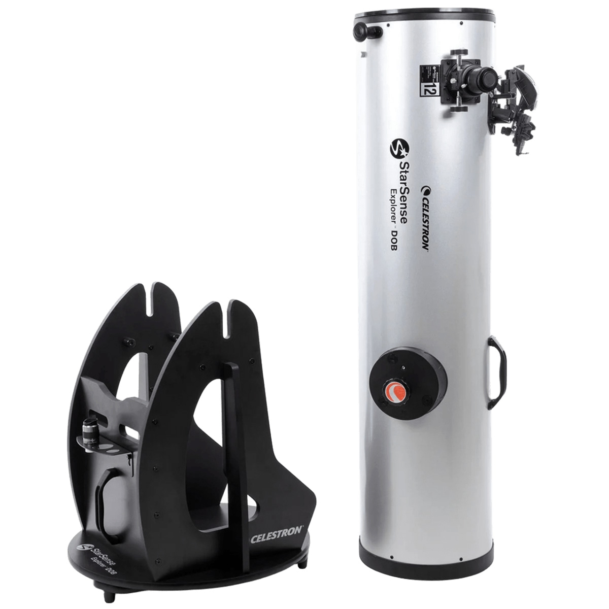 Телескоп Celestron StarSense Explorer 12" Dobsonian — потужний рефлектор Ньютона з великою апертурою 305 мм та фокусною відстанню 1500 мм на надстійкому монтуванні Добсона, модель вирізняється підтримкою керування через мобільний застосунок. Завдяки запатентованій технології StarSense Explorer, яка за допомогою смартфона аналізує нічне небо і визначає положення телескопа в реальному часі, застосунок підказує напрямок руху для точного наведення на об’єкти. Це робить спостереження доступними навіть для користувачів без досвіду, створюючи відчуття роботи з персональним гідом по зоряному небу. Водночас велика апертура забезпечує яскраві та деталізовані зображення й дозволяє телескопу залишатися актуальним інструментом і для досвідчених астрономів-аматорів, які очікують максимум можливостей від візуальних спостережень.