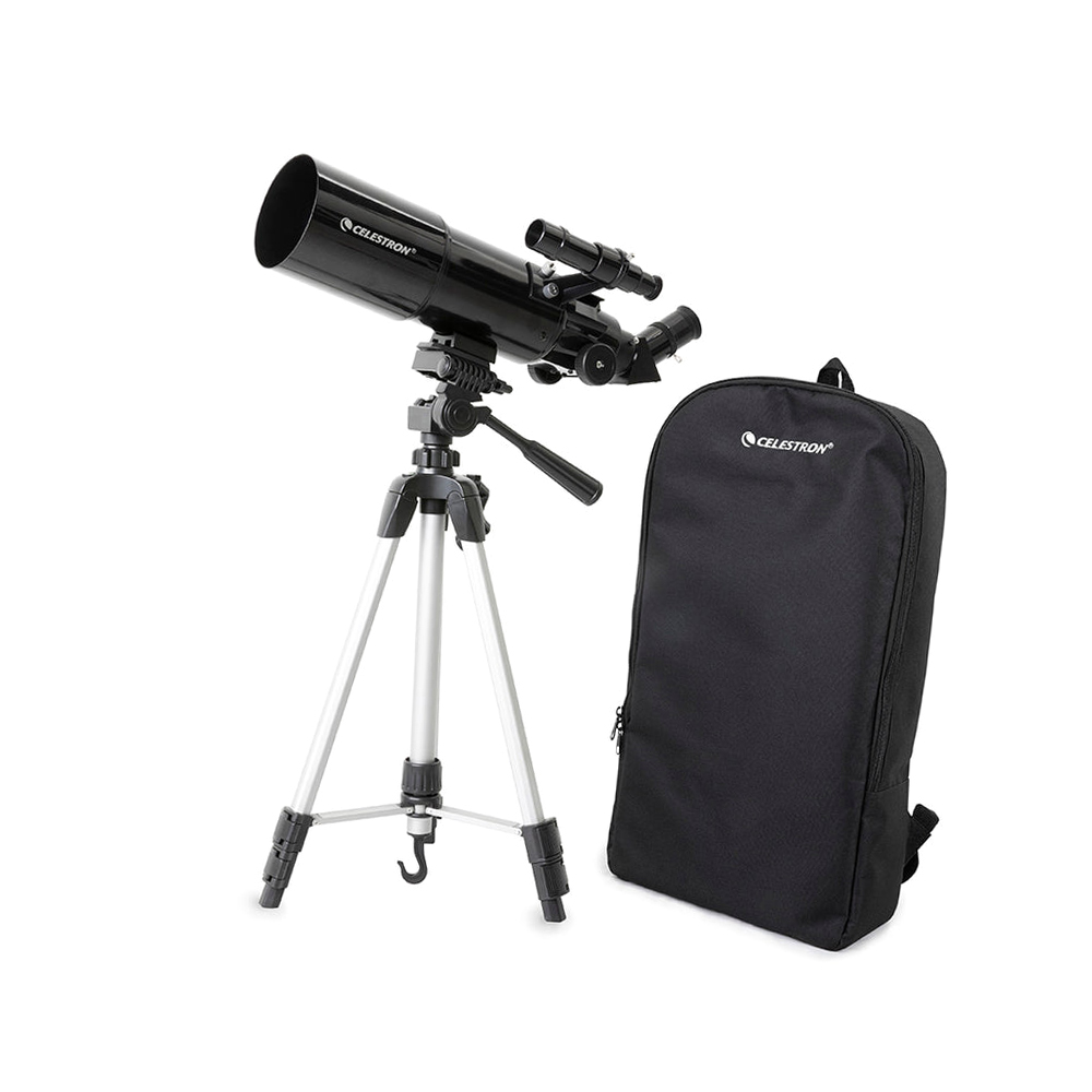 Celestron TravelScope 80 — це ідеальна модель для юних любителів космічних спостережень, які також люблять поїздки за місто і туристичні подорожі. TravelScope 80 оснащений містким рюкзаком, в якому є місце для оптичної труби, штатива, адаптера для смартфона та інших аксесуарів. Загальна вага рюкзака з усіма комплектуючими всього 2 кг.