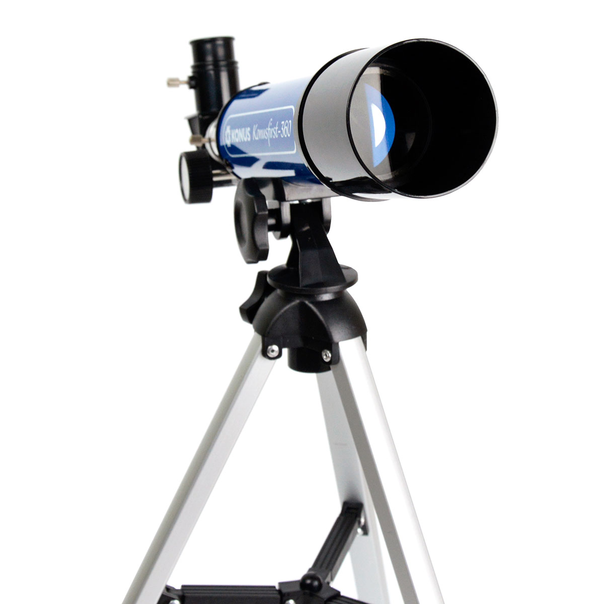 Телескоп KONUS Konusfirst-360 є короткофокусним рефрактором-ахроматом з діаметром об'єктива 50 мм і фокусною відстанню 360 мм. Це означає, що оптична труба матиме високу світлосилу та широкий кут зору. Як правило, подібні телескопи найкраще підходять для спостереження за тьмяними та протяжними об'єктами. Крім цього, навіть при спостереженні за Місячною поверхнею буде доступна помітно більша оглядова площа, в порівнянні з довгофокусними трубами. Це також свого роду комфорт, розплачуватися за який доведеться невеликими збільшеннями: всі основні планети Сонячної системи будуть схожі на яскраві кольорові зірки.