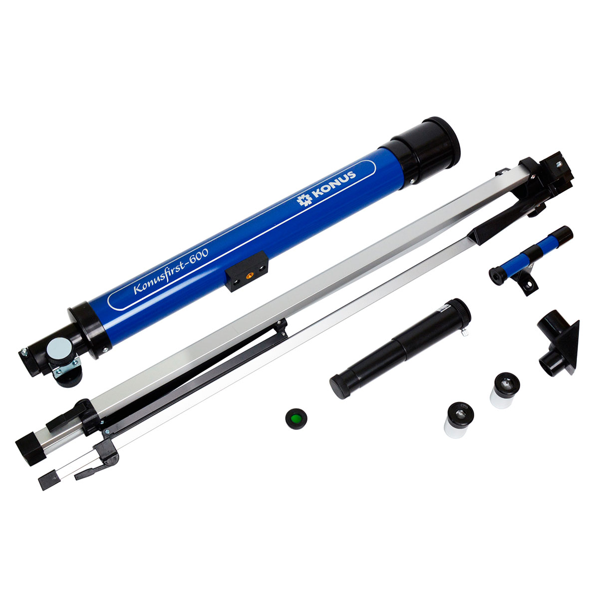 KONUS Konusfirst-600 — нескладний в освоєнні телескоп початкового рівня спеціально для дітей та астролюбителів, які тільки починають знайомитися з астрономією. Назва серії "Konusfirst" вказує на те, що це буде ідеальний вибір в якості першого телескопа. У комплекті є все необхідне, щоб одразу розпочати спостереження. Модель найкраще підходить для Місячно-планетарних або ландшафтних спостережень. Оптична конструкція формує неперевернуте та дзеркальне зображення, дозволяючи успішно замінити підзорну трубу.