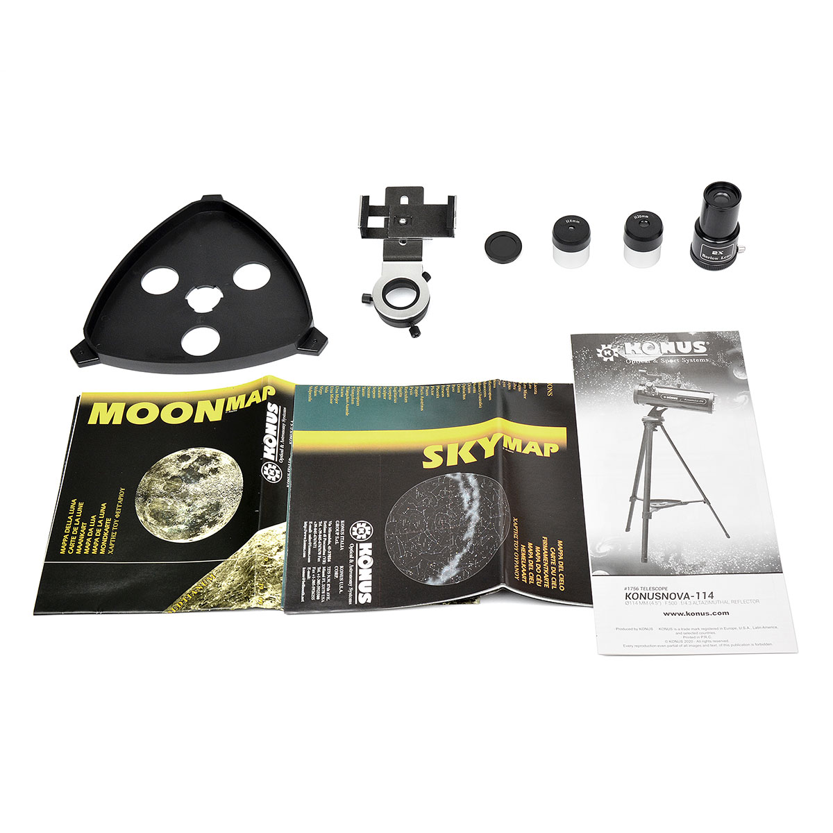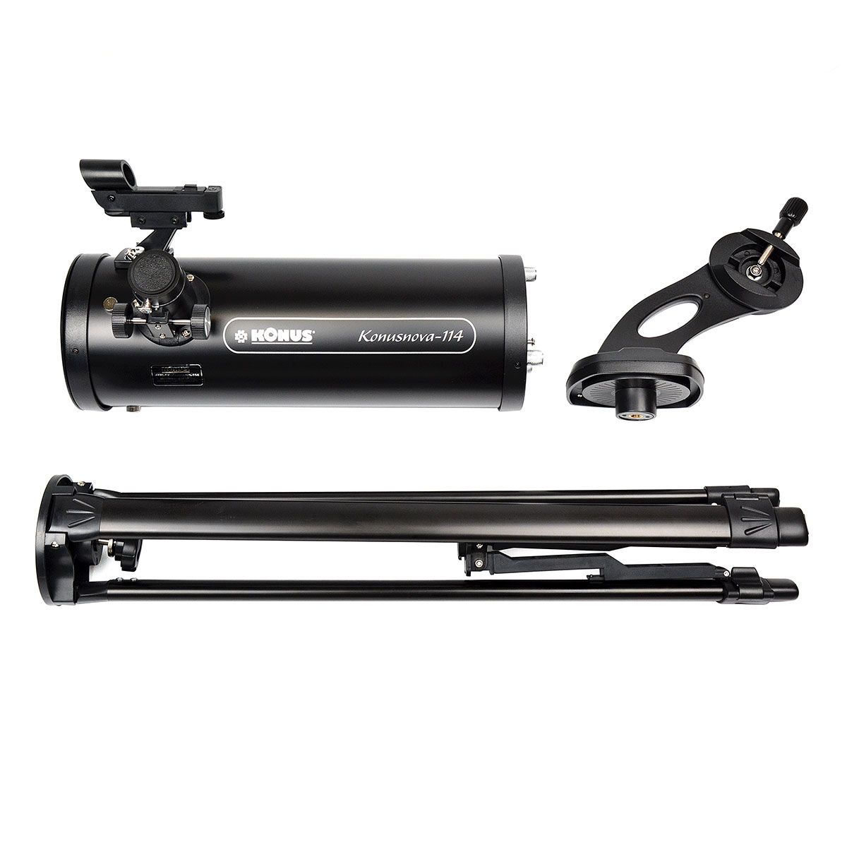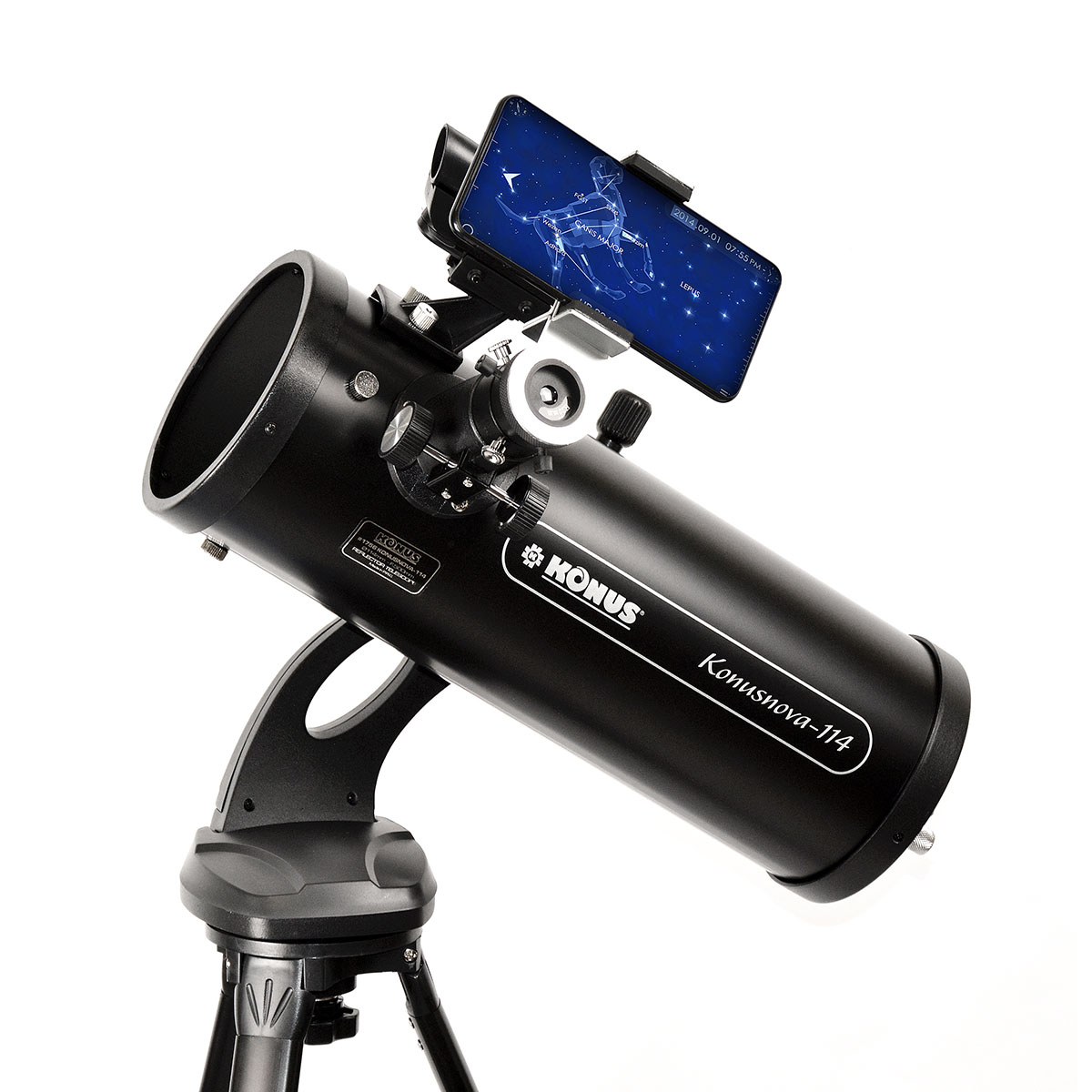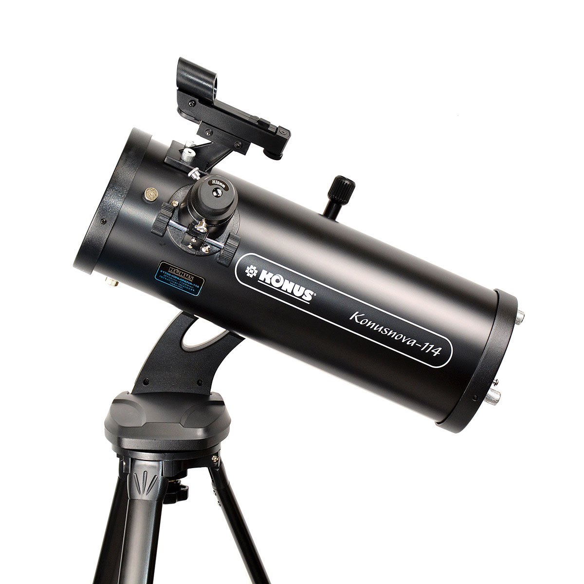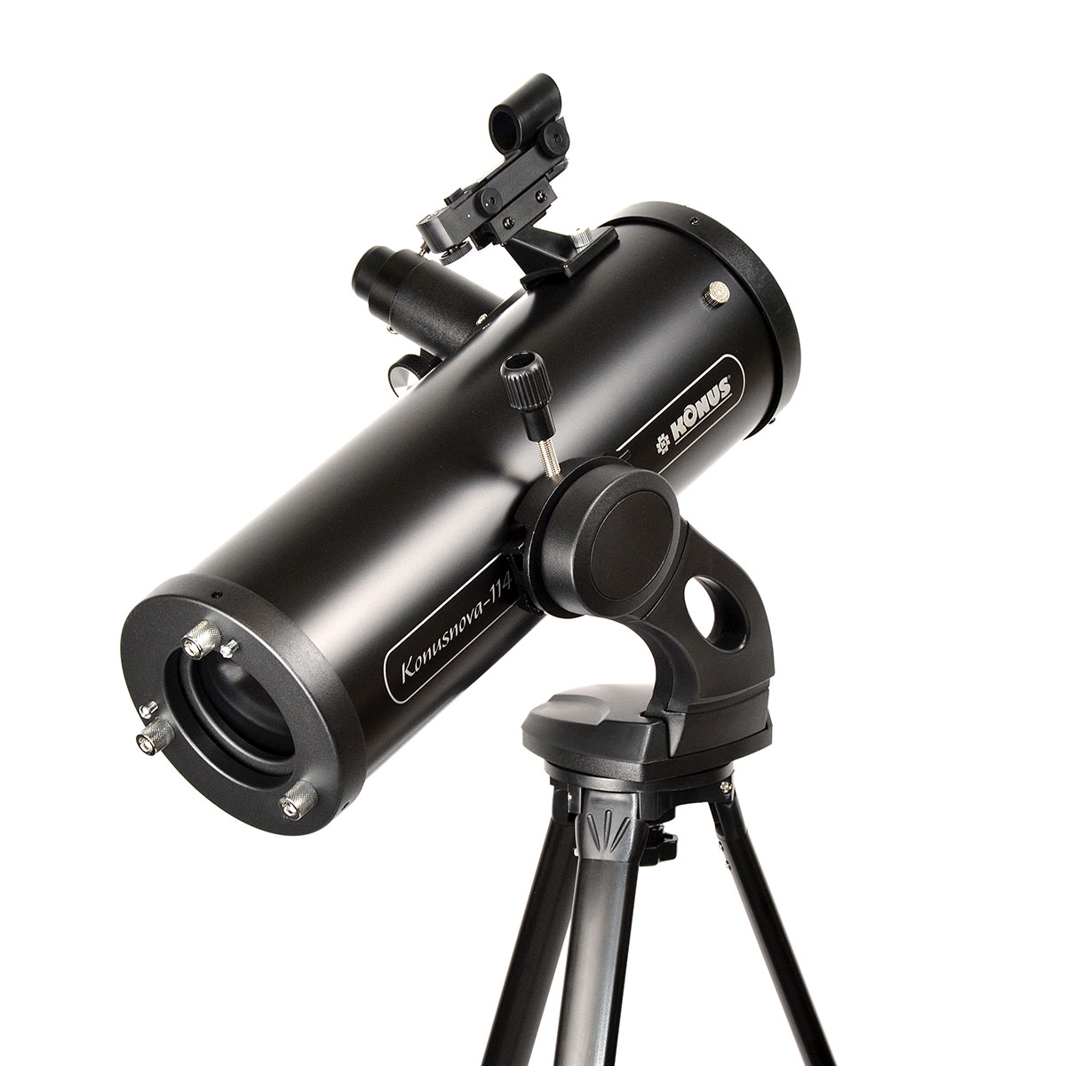 Konus KONUSNOVA-114 — це відмінний варіант для астронома-початківця, який цікавиться спостереженням за всіма типами астрономічних об'єктів. Доступний по ціні телескоп поєднує в собі ексклюзивний дизайн, легке в управлінні альт-азимутальне монтування, міцний регульований металевий штатив з лотком для аксесуарів, коліматорний видошукач, 2 окуляри Гюйгенса і досить велику апертуру, що відкриває любителям космічних спостережень можливість досліджувати Місяць, планети Сонячної системи, а також спостерігати за туманностями, зоряними скупченнями та іншими об'єктами глибокого космосу.