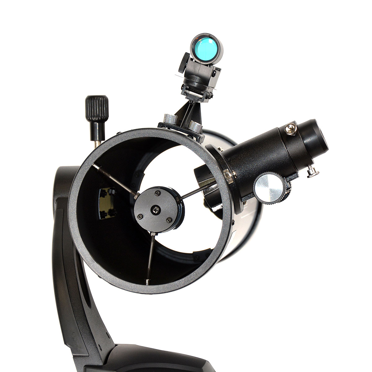 Металева оптична труба оснащена якісними дзеркалами. Сама труба кріпиться на регульований по висоті металевий штатив (78-121 см) з альт-азимутальним монтуванням, що дозволяє здійснювати просте ручне управління.