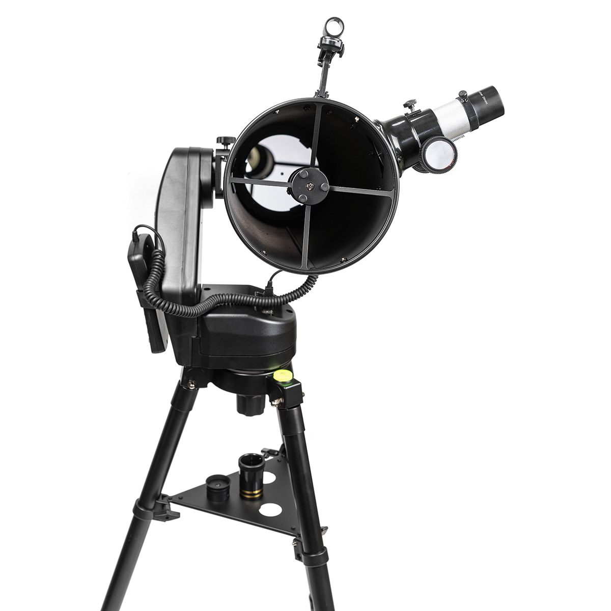 Рефлектор встановлений на напіввилкове альт-азимутальне монтування з автонаведенням і стеженням. Монтування живиться від 8 батарейок типу АА або додаткового адаптера змінного струму 12В / 500 мА, а його управління здійснюється контролером SkyTouch. Позиціонування телескопа можна здійснювати всього за однією зіркою (швидкий метод), після чого користувачеві буде доступно понад 30 тисяч об'єктів. Ви можете вибрати між кількома зоряними каталогами туманностей, галактик, планет Сонячної системи тощо. Автотрекінг дозволяє тримати об'єкти в полі зору і спостерігати за ними протягом тривалого часу. Монтування встановлюється на сталевий штатив з регульованою висотою 0.65-1.20 м, а протиковзні наконечники його ніжок забезпечать стійкість телескопа на будь-якій поверхні.