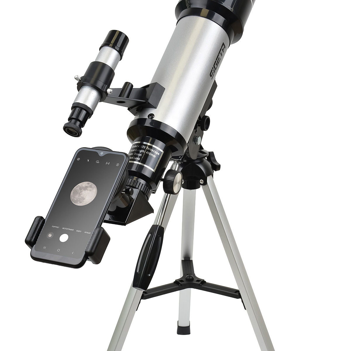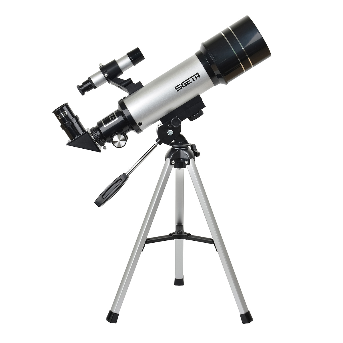 Апертура 70 мм у поєднанні з короткою фокусною відстанню 400 мм забезпечує хорошу світлосилу, що дозволяє проводити детальні спостереження за Місяцем — його кратерами, морями й гірськими хребтами. Також можна розгледіти диск Юпітера, побачити кільця Сатурна, а ще спостерігати яскраві комети й найближчі планети — Марс і Венеру. За сприятливих умов видимості доступні й деякі об’єкти далекого космосу, наприклад туманність Оріона, галактика Андромеди, зоряне скупчення Плеяди, а також яскраві зірки сузір’я Великої Ведмедиці. Всі лінзи ахроматичного об’єктива мають просвітлююче покриття блідих фіолетових тонів, що знижує відблиски та покращує контрастність зображення.