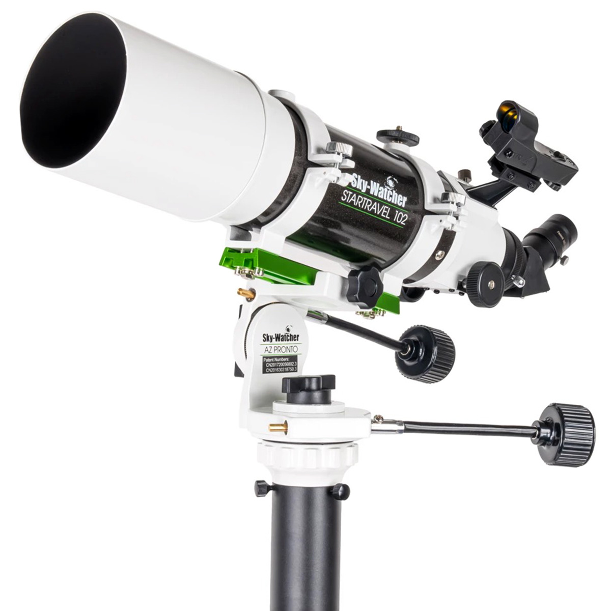 Телескоп Sky-Watcher BK 1025AZ Pronto — це короткофокусний ахроматичний рефрактор з апертурою 102 мм і фокусною відстанню 500 мм, встановлений на портативному азимутальному монтуванні. Завдяки великій апертурі та відносно короткій фокусній відстані телескоп забезпечує широке поле зору. Це робить його чудовим вибором для спостереження за великими розсіяними скупченнями, протяжними туманностями або навіть цілими фрагментами Чумацького Шляху. Також стане вдалим варіантом для спостерігачів-початківців, оскільки широке поле зору значно спрощує пошук об'єктів на небі.