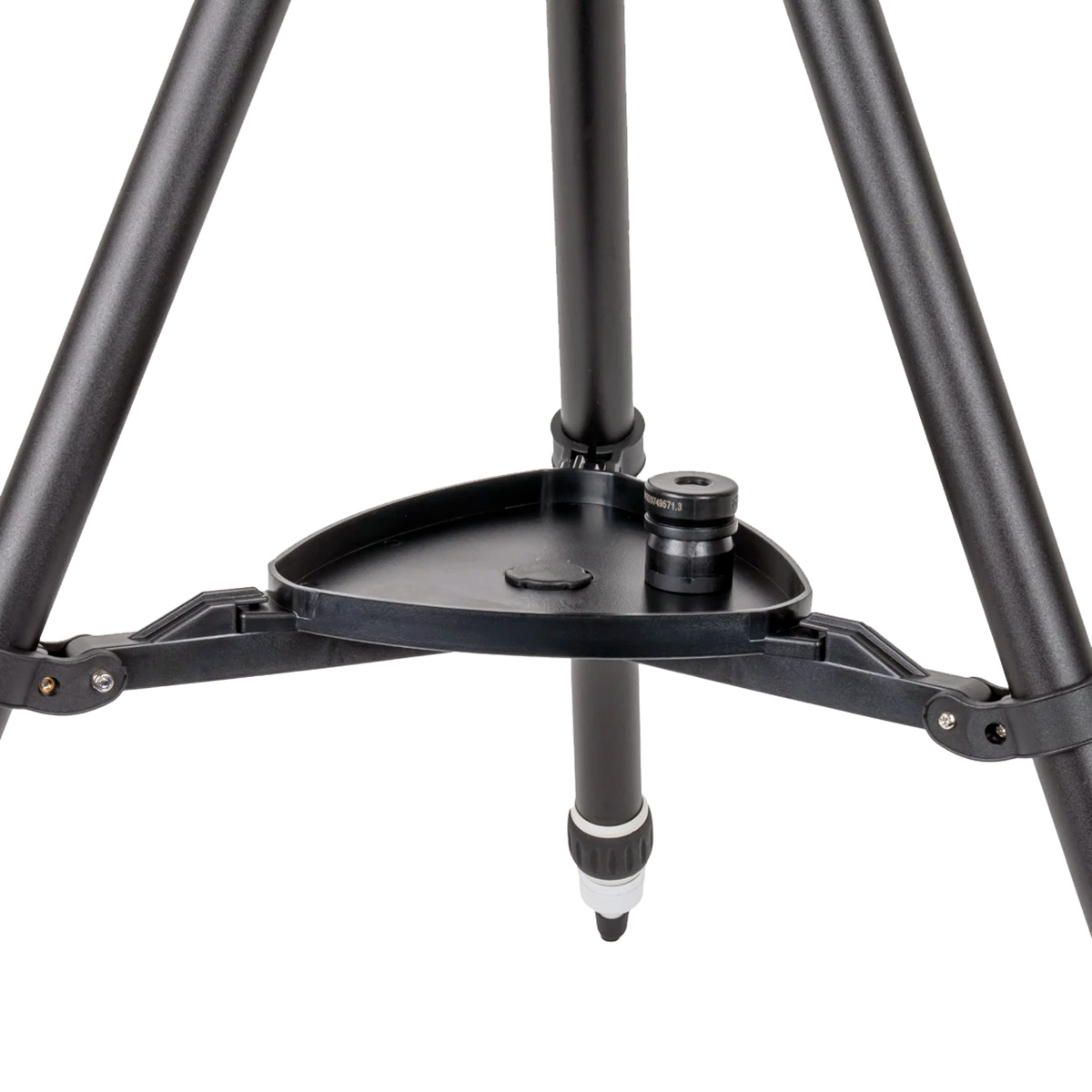 Оптична труба встановлена на легке та портативне азимутальне монтування. Воно оснащене механізмами тонких рухів по обох осях з гнучкими ручками, що забезпечує плавне й точне наведення на об’єкти. Монтування також дозволяє переміщати трубу вручну навколо кожної осі для швидкого панорамування та регулювання висоти. Алюмінієвий штатив має регульовані по висоті ніжки з фіксаторами та оснащений пластиковим лотком для аксесуарів.