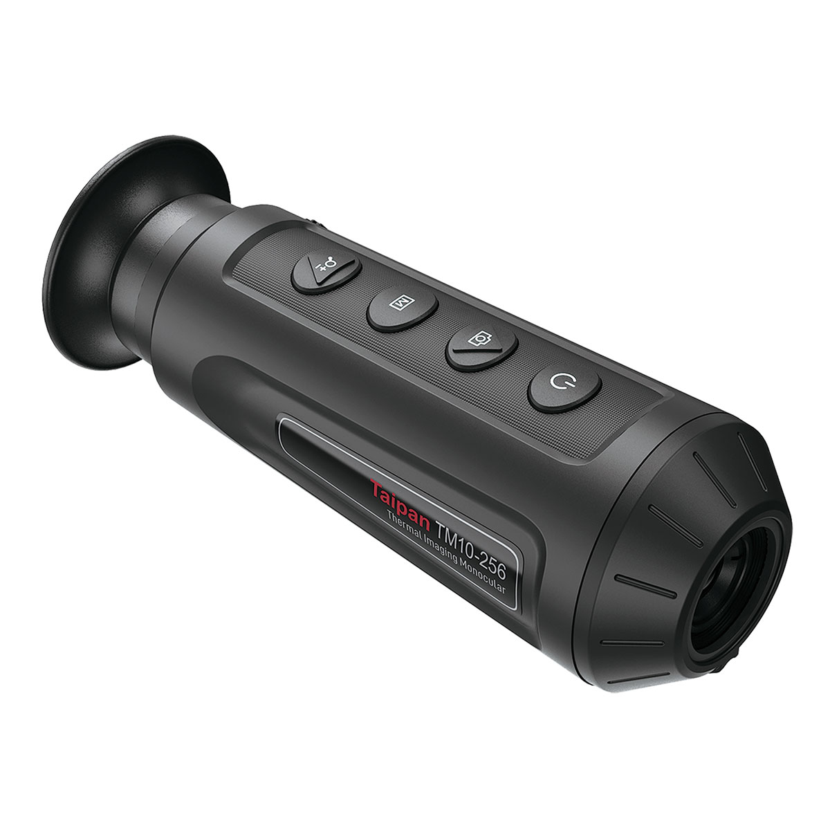 AGM TAIPAN TM10-256 — портативний тепловізійний монокуляр із матрицею 256 x 192 (25 Гц) та дисплеєм LCOS 720 x 540. Вбудованої пам'яті в 8 Гб вистачить для більшості основних завдань. Модель призначена для використання в польових умовах, а саме для патрулювання, пошукових чи рятувальних заходів, спецоперацій, вирішення тактичних завдань, походів, полювання та іншого. Відмінно підійде для спостереження та виявлення цілей на відстані до 460 метрів.