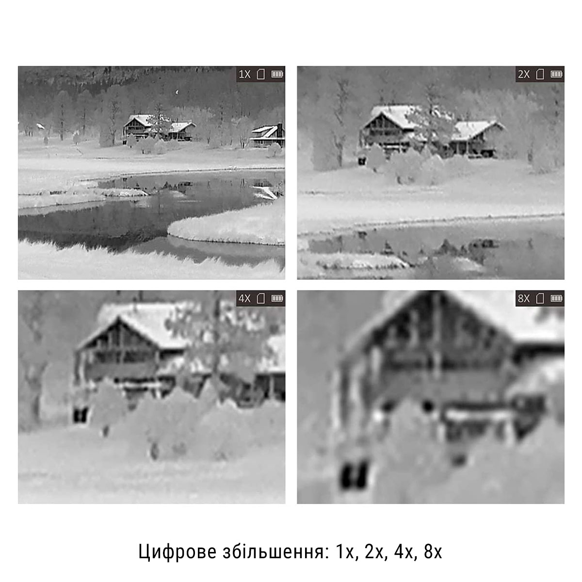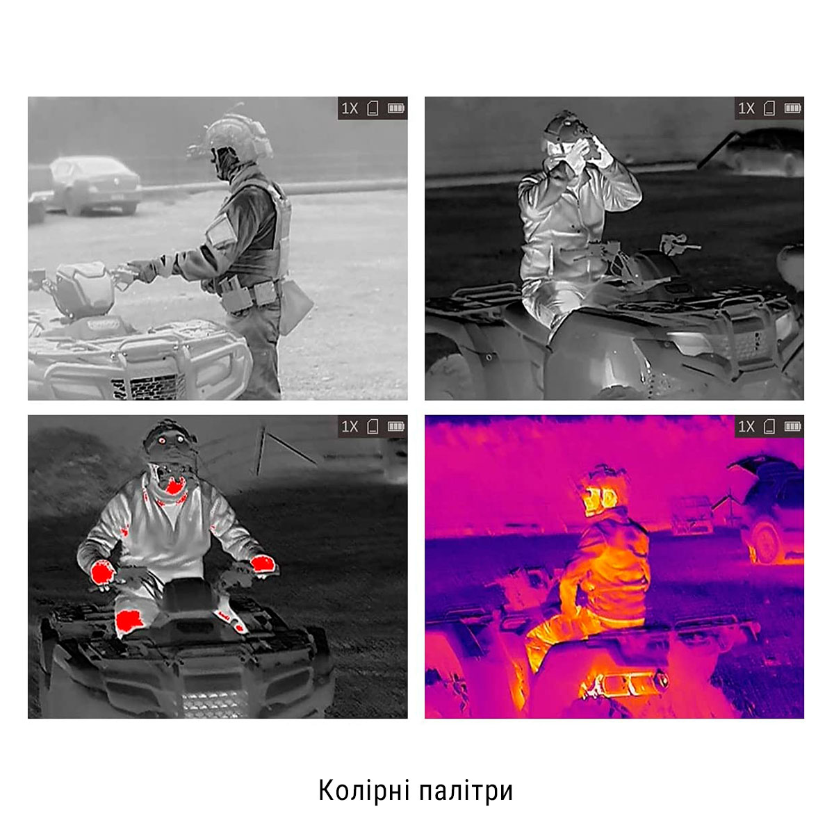 Монокуляр AGM TAIPAN TM25-384 підтримує кілька режимів цифрового збільшення — 2x, 4x, 8x. Також користувач може вибрати колірну палітру з 4 доступних варіантів: white hot, black hot, fusion, red hot.