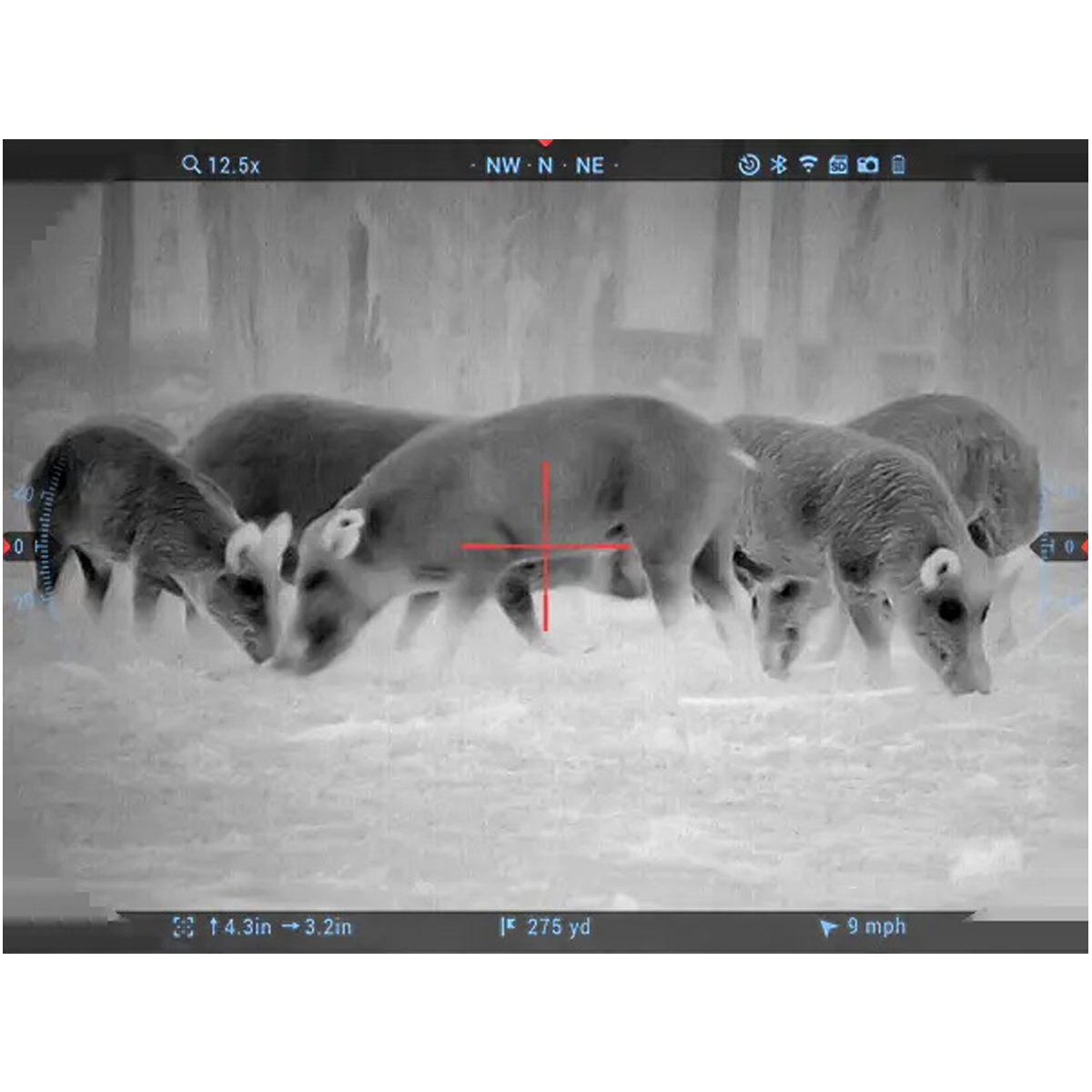 Однією з головних деталей прицілу є передовий тепловізійний сенсор п'ятого покоління (Gen 5). Він оснащений високочутливою матрицею з роздільною здатністю 1280 x 1024 пікселів, міжцентровим розміром пікселя 12 мікрометрів та частотою оновлення кадрів 60 Гц. Це гарантує надзвичайно детальне та плавне зображення навіть рухомих об'єктів. Інформація виводиться на яскравий OLED-дисплей з роздільною здатністю 1024 x 768 пікселів, а обробку даних забезпечує потужне ядро ATN Gen V Quad Core.