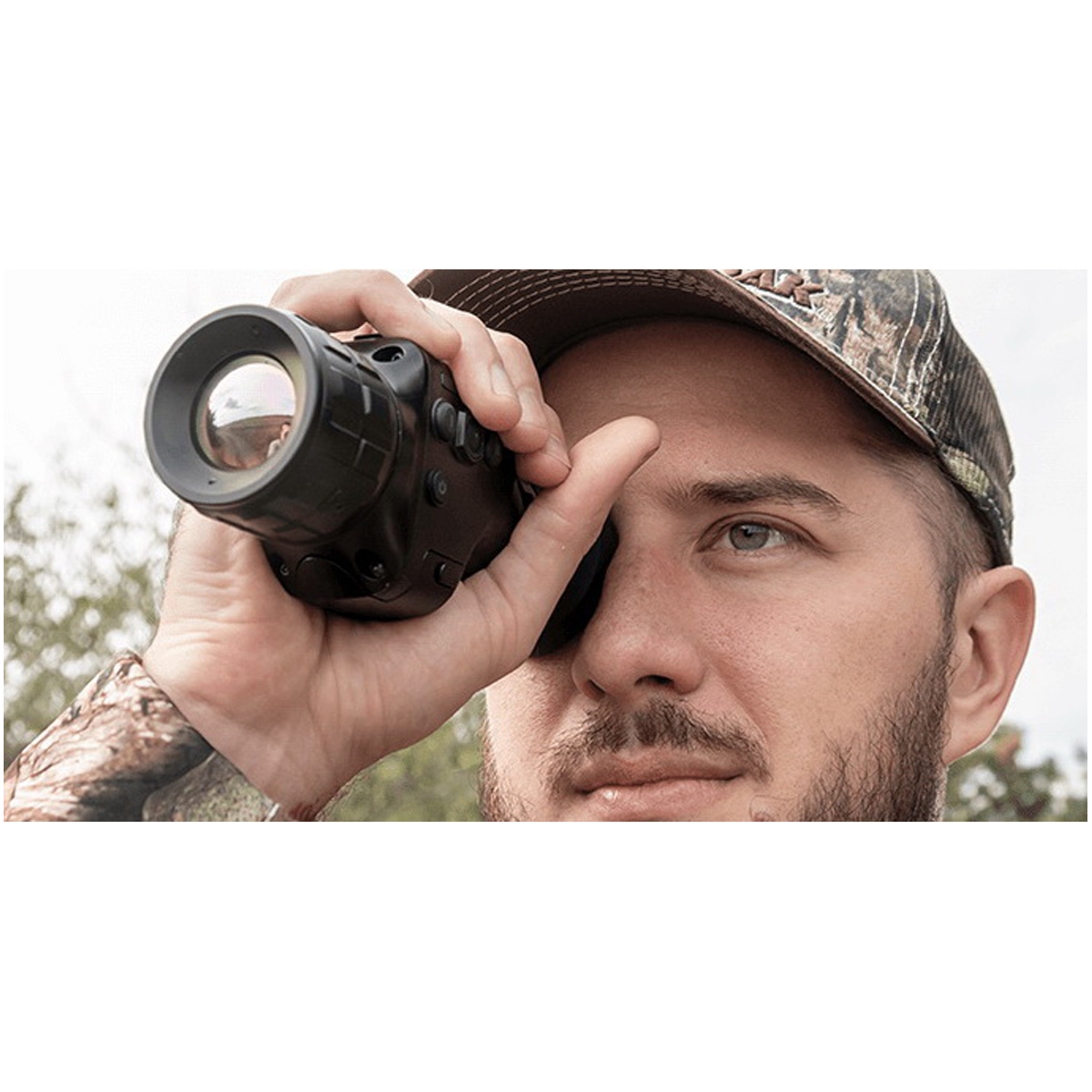 Монокуляр оснащено об’єктивом з фокусною відстанню 19 мм та цифровим масштабуванням до 4x (без оптичного збільшення). Така комбінація дозволяє точно виявляти теплові об’єкти на значній відстані. Поле зору становить 23.2° по горизонталі та 17.4° по вертикалі, що еквівалентно охопленню 41 x 30.5 м на відстані 100 м. Цей параметр забезпечує широкий кут огляду та дозволяючи помітити людину на дистанції до 654 м.