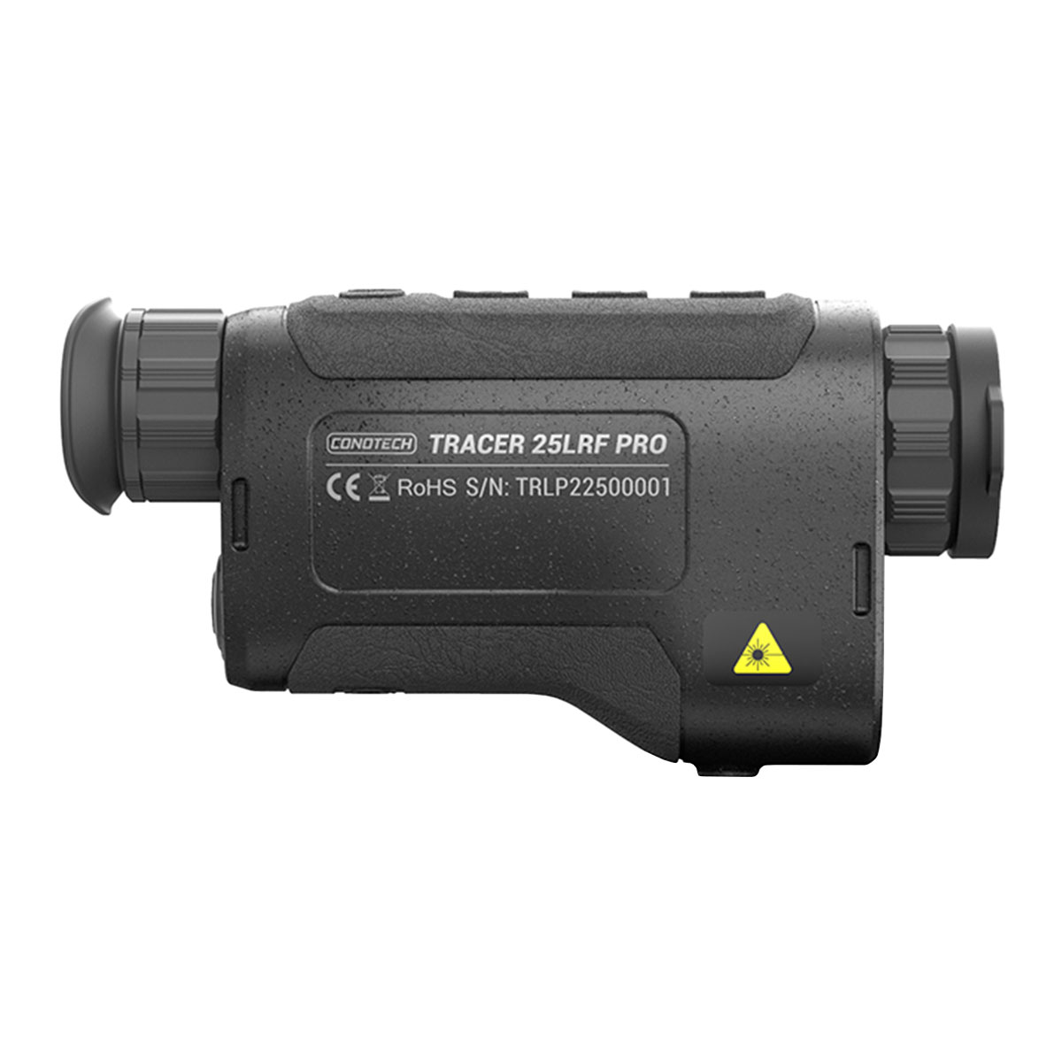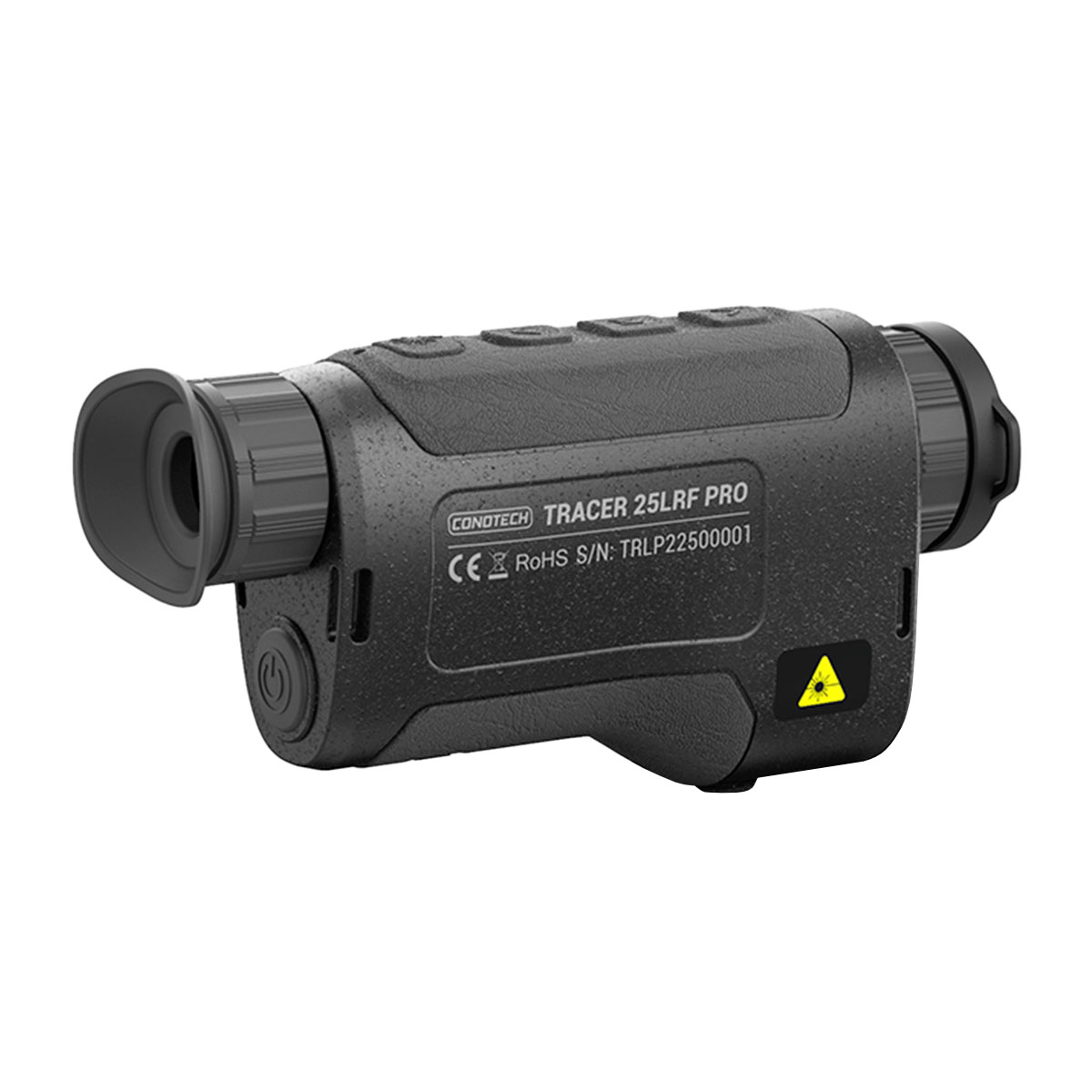 Cono Tech Tracer 25LRF Pro – це тепловізійний монокуляр із високоточним лазерним далекоміром. У моделі використовується надчутливий VOx-сенсор (12 µm) з роздільною здатністю 384 х 288 px, частотою оновлення 50 Гц та германієвий об'єктив 25 мм. Оптичне збільшення складає 2.4х, а кутове поле зору – 10.6° x 7.9°.