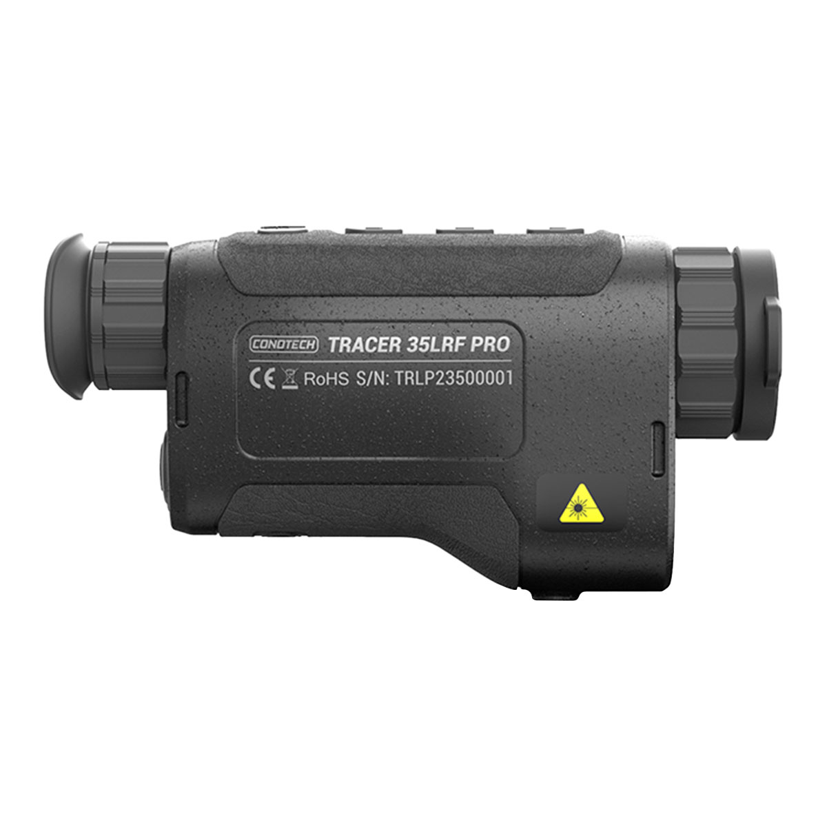 Тепловізійний монокуляр Cono Tech Tracer 35LRF Pro має високоточний лазерний далекомір та побудований на основі германієвого об'єктива 35 мм та надчутливого VOx-сенсора (12 µm, 50 Гц) з роздільною здатністю 384 х 288 px. Оптичне збільшення складає 3.3х, а кутове поле зору – 7.5° x 5.7°.