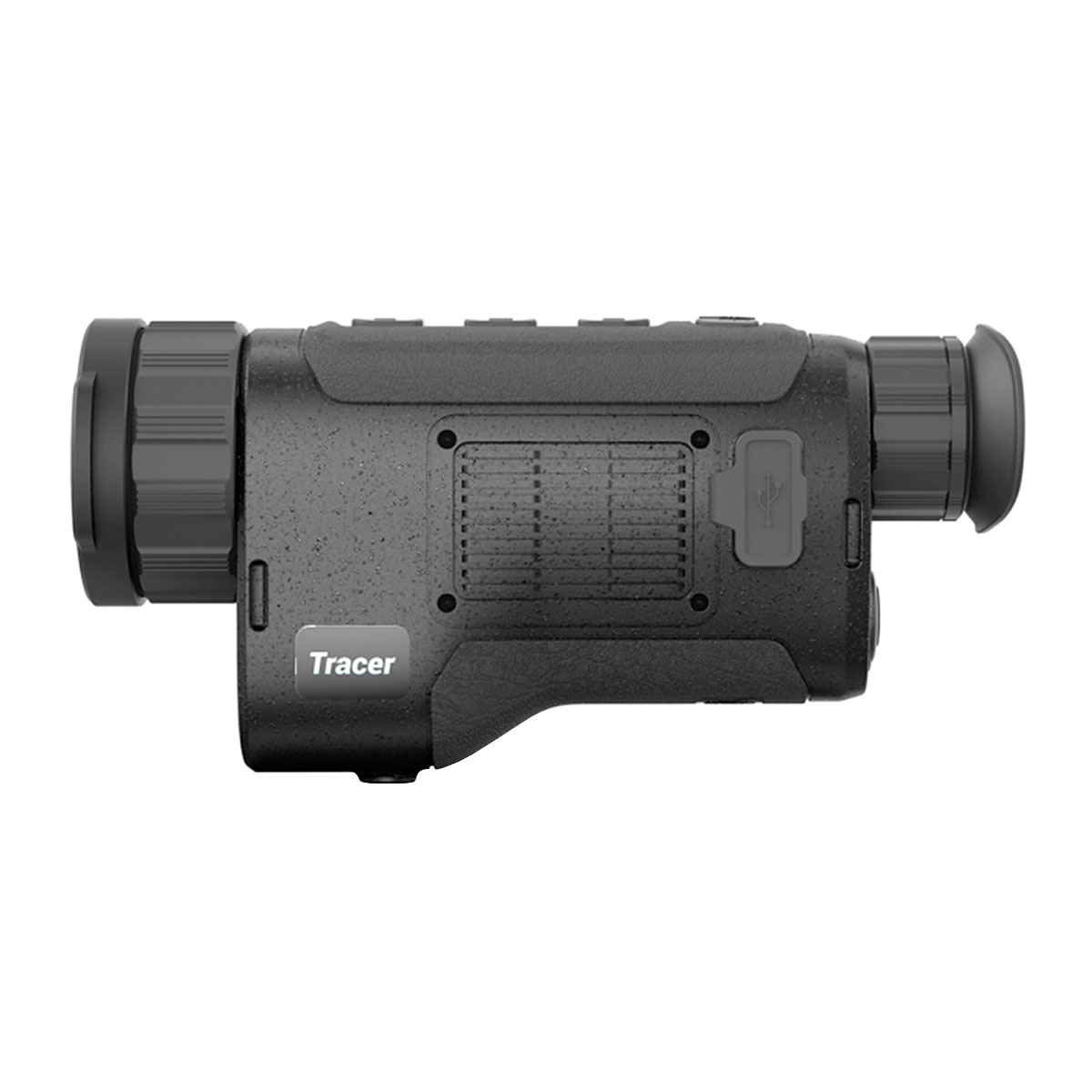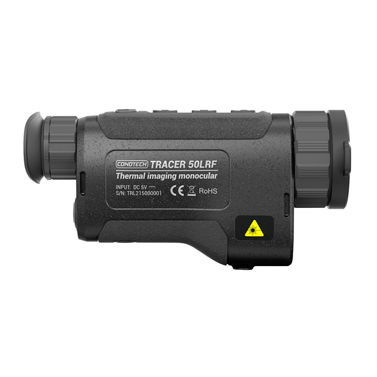 Тепловізійний монокуляр Cono Tech Tracer 50LRF має високоточний лазерний далекомір, потужне оптичне збільшення 4.8х, кутове поле зору 5.3° x 4° та побудований на основі германієвого об'єктива 50 мм та надчутливого VOx-сенсора (12 µm, 50 Гц) з роздільною здатністю 384 х 288 px.