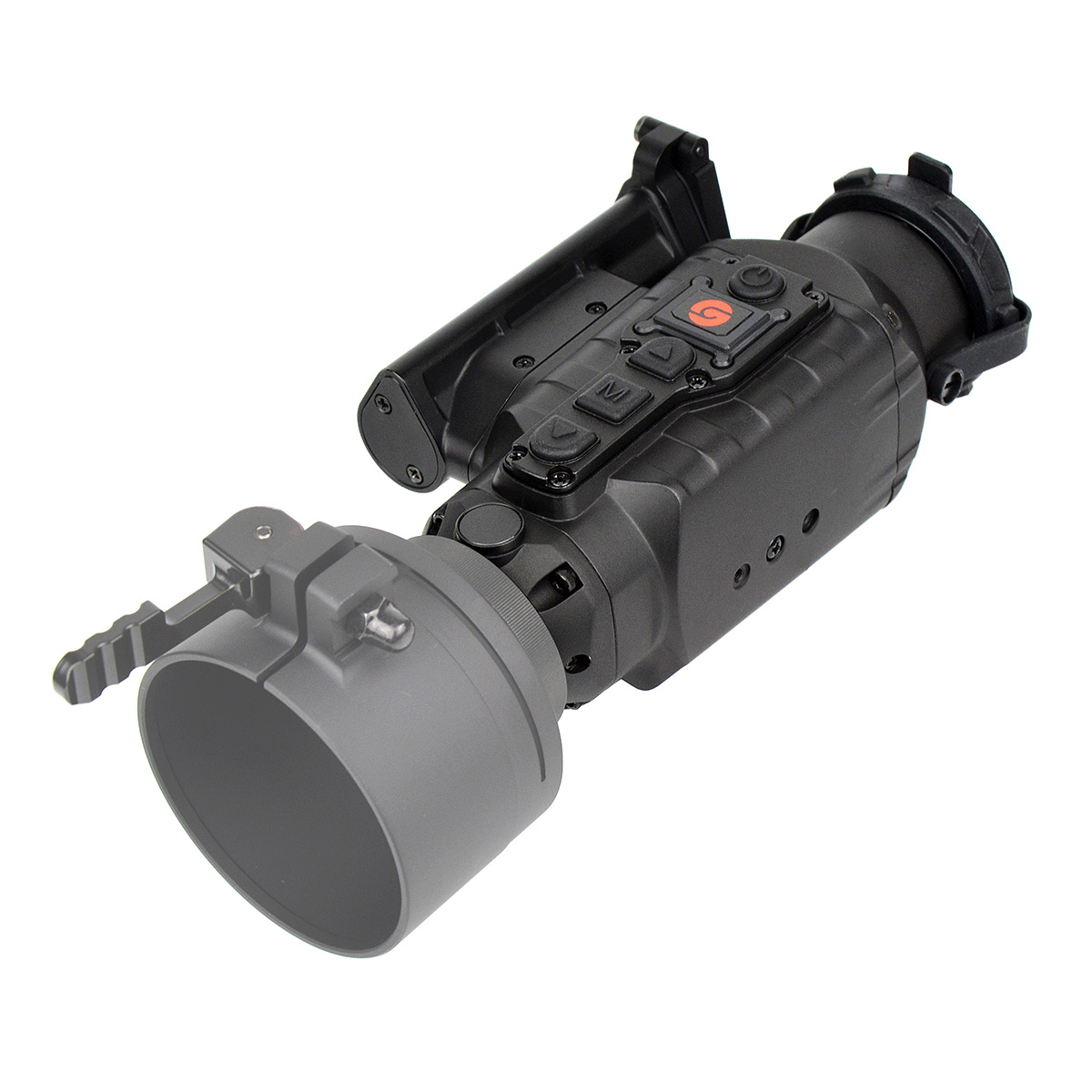 Оптико-електронна частина пропонує вичерпний функціонал, який майже не поступається звичайним тепловізорам. Меню налічує шість колірних палітр та три запрограмовані режими контрастності (сцени). Для насадок високої чіткості доступний високоякісний 8x цифровий зум, який можна комбінувати з оптичним збільшенням основної оптики. Мінімалістичне меню виконано у вигляді піктограм, щоб не затуляти огляд у відповідальні моменти. Тепловізійне зображення виводиться на 0.5" OLED-дисплей. Вся електроніка розміщується у надійно захищеному корпусі з інтуїтивно зрозумілими органами керування.