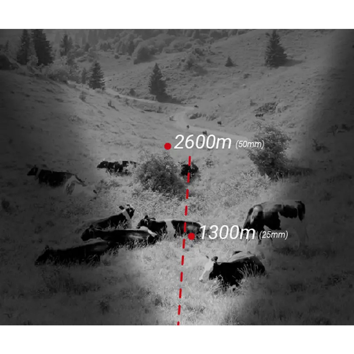 Віддалення вихідної зіниці у 20 мм забезпечує комфортну та безпечну роботу. Кутове поле зору 8.8x7° дозволяє стрільцю ефективно контролювати широкий сектор місцевості. Прилад здатен виявити теплову сигнатуру людини на відстані до 2600 метрів.