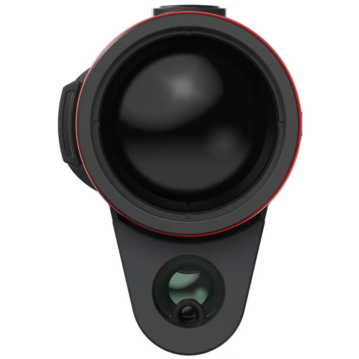 Оптика приладу гарантує чудове просторове охоплення та дальність роботи. Кутове поле зору становить 8.8 x 7.0°, що на практиці трансформується у широке лінійне поле зору 15 на 12 метрів на відстані 100 метрів. Це дозволяє оператору ефективно контролювати значні ділянки місцевості, не втрачаючи загальної картини. Завдяки поєднанню передової оптики та чутливого сенсора, дальність виявлення ростової фігури людини сягає 2600 метрів. Комфорт під час тривалого використання надається значним віддаленням вихідної зіниці на 16 мм, це знижує навантаження на очі та дозволяє зручно користуватися приладом навіть в окулярах.
