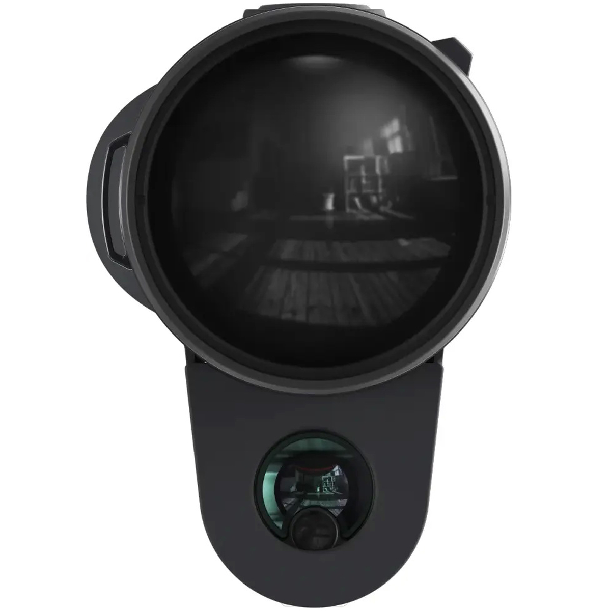 Візуалізація здійснюється через 0.39" AMOLED-дисплей з роздільною здатністю 1920x1080 пікселів, який пропонує глибокий чорний колір та яскраву картинку. Прилад оснащений повним набором допоміжних інструментів: гіроскопом, компасом та функцією автовідключення для збереження енергії. Користувачу доступні сім колірних палітр, включаючи White Hot, Black Hot, Red Hot, Green Hot, Iron Red, Blue Hot, Sepia, дозволяючи адаптувати зображення під будь-які типи місцевості. Місткість пам'яті 64 Гб дає змогу зберігати тисячі фотографій та години відеозапису, а корекція діоптрій +/- 6 робить використання комфортним для людей з особливостями зору.