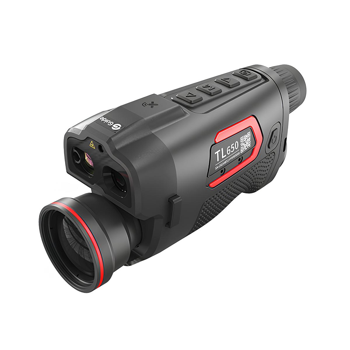 Guide TL650 LRF — мультиспектральний тепловізійний монокуляр високої чіткості з інтегрованою цифровою камерою денного й нічного бачення та вбудованим лазерним далекоміром. Модель оснащена 50-мм об'єктивом та тепловізійним сенсором із роздільною здатністю 640x480 пікселів, що забезпечує винятково деталізоване зображення у поєднанні з підвищеною дальністю виявлення. Прилад формує лінійне поле зору 15 x 12 метрів на відстані 100 м. Така конфігурація робить TL650 LRF оптимальним рішенням для спостереження за віддаленими об'єктами, зокрема, для виявлення та розпізнавання цілей на відстані до 2600 м, що важливо для охоронного моніторингу, тактичних задач або полювання.