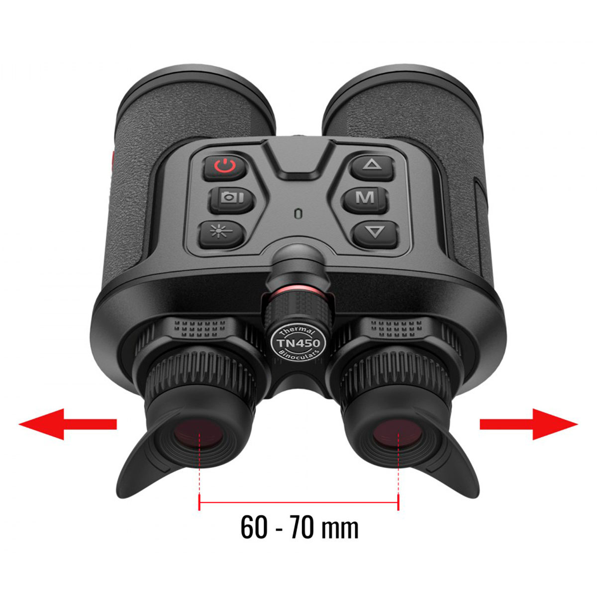 Guide TN450 – це потужний тепловізійний бінокуляр з лазерним далекоміром та компасом для спостереження за найбільш віддаленими джерелами тепла. Безпрецедентна по своїй зручності бінокулярна конструкція з двома екранами дозволить безперервно стежити за ціллю упродовж тривалого часу, не втомлюючи при цьому очі. Модель вирізняється інфрачервоною оптикою зі звуженим полем зору з метою досягнення найвищих показників щодо дальності виявлення. Такий пристрій ідеально проявить себе у військових чи тактичних заходах, патрулюванні та охороні кордонів, рятувальних і пошукових операціях або під час нічного полювання. Лінійне поле зору на 100 м по горизонталі та вертикалі становить відповідно 13.6 x 10.1 метрів.