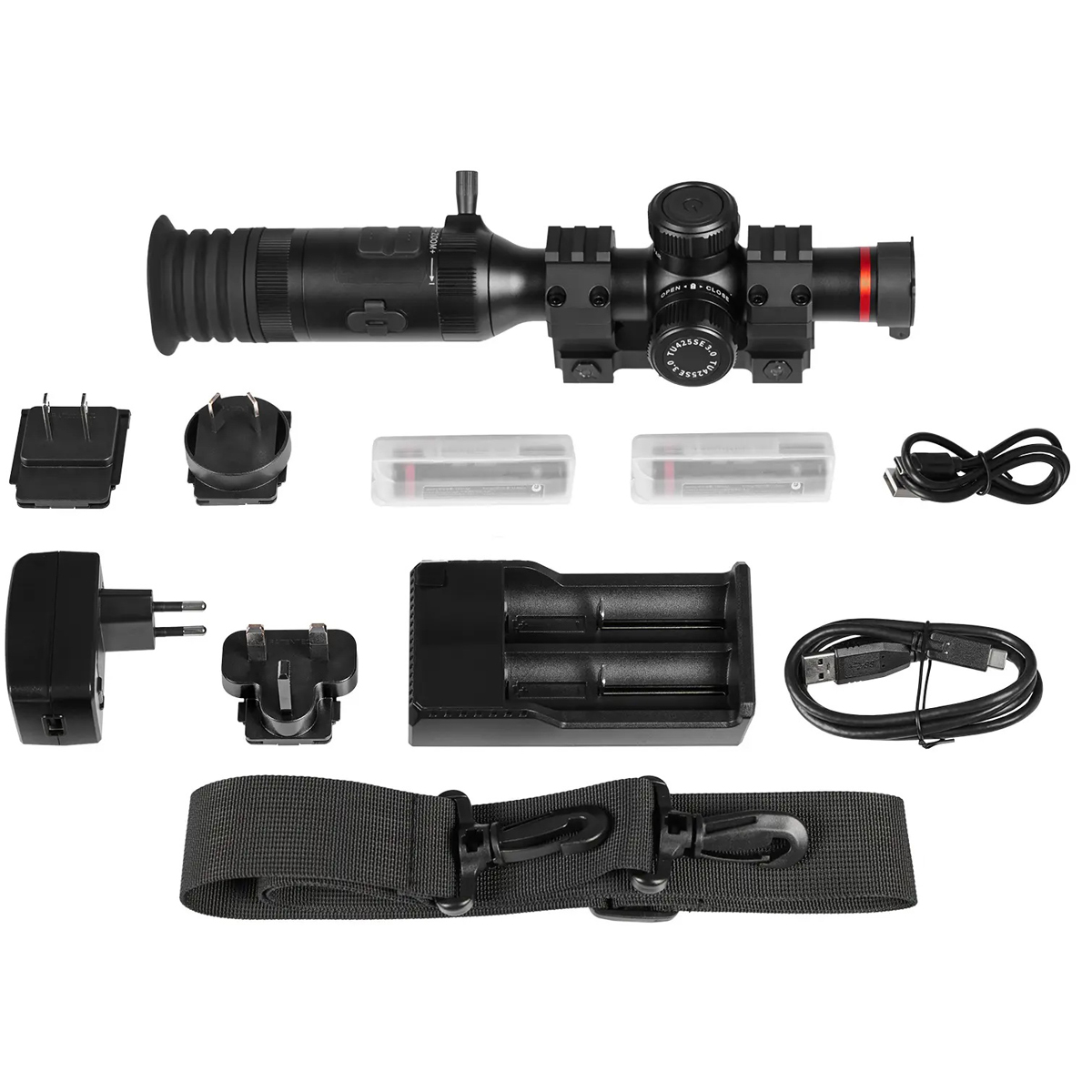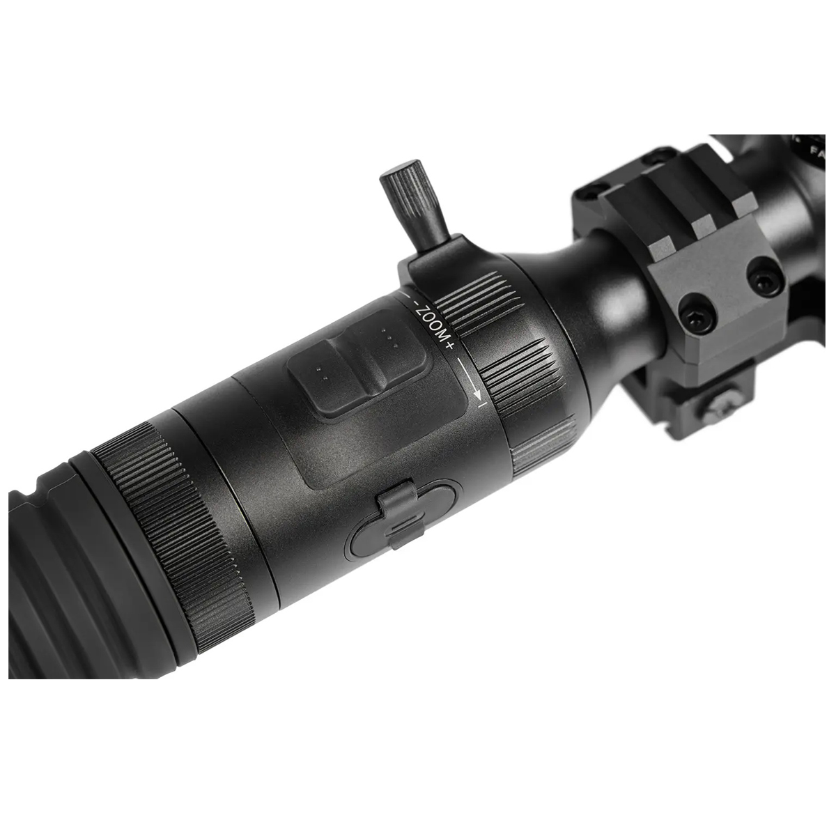 Кутове поле зору становить 7.4 x 4.4°, що на дистанції 100 метрів відповідає видимій області розміром 12.9 на 7.7 метра. Такі параметри дозволяють стрільцю ефективно контролювати значний сектор, не втрачаючи дорогоцінних секунд на зайві рухи. Завдяки високочутливому сенсору та якісній оптиці, дальність виявлення об'єкта розміром з людину сягає 1300 метрів, це повністю перекриває потреби більшості сценаріїв полювання. Важливим аспектом для безпеки та комфорту є значне віддалення вихідної зіниці, яке складає 48 мм і захищає стрільця від віддачі навіть на великих калібрах.