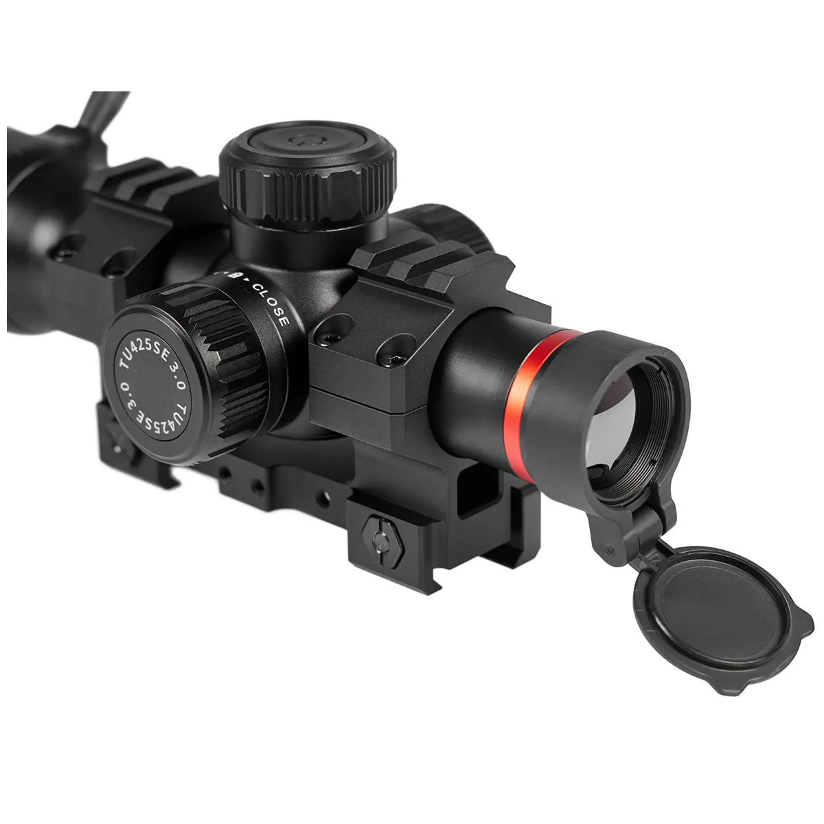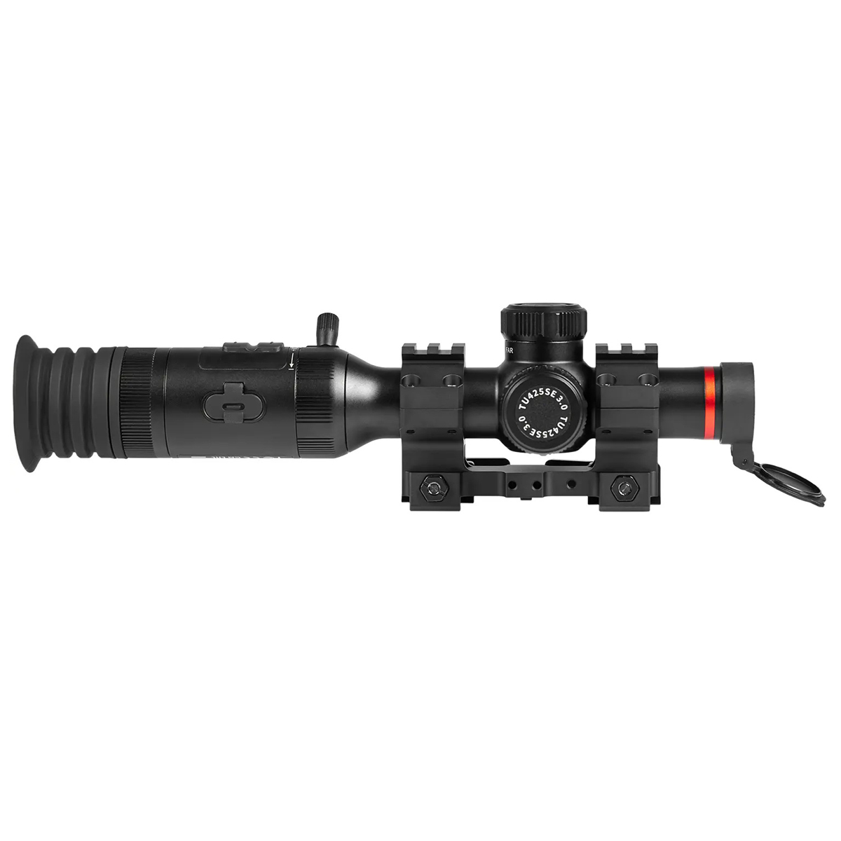 Тепловізійний приціл Guide TU425SE 3.0 — це втілення сучасних технологій у класичному формфакторі денної оптики, призначений для полювання та тактичних спостережень на коротких та середніх дистанціях. Основою його оптичної системи є 25-міліметровий германієвий об'єктив, який забезпечує комфортне оптичне збільшення 3.1x. Цей показник є ідеальним для швидкого виявлення цілей та стрільби навскидь. Для більш детального розпізнавання та точного прицілювання на значній відстані передбачено плавний цифровий зум з кратністю від 1x до 4x, який дозволяє користувачеві гнучко адаптуватися до будь-якої ситуації. Класичний дизайн корпусу не лише надає звичну ергономіку, але й спрощує монтаж на зброю за допомогою стандартних 30-міліметрових кілець.