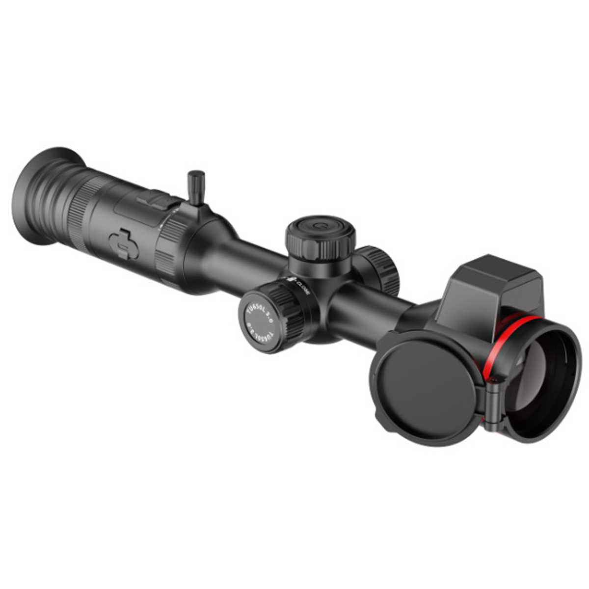 Основою прицілу є чутливий тепловізійний сенсор на основі оксиду ванадію (VOx) з роздільною здатністю 400 x 300 пікселів. Завдяки 12-мікронному кроку пікселя та високій частоті оновлення 50 Гц, приціл надає плавне зображення рухомих об'єктів без будь-яких затримок. Теплова чутливість (NETD) сягає 20 мілікельвінів (mK). Цей показник гарантує чіткість та деталізацію зображення, дозволяючи розрізняти найдрібніші температурні відмінності навіть у складних погодних умовах, таких як дощ, туман або снігопад. Кутове поле зору становить 7.4° x 4.4°, що на практиці дає комфортне лінійне поле зору 13 x 8 метрів на дистанції 100 метрів. Комфорт для очей забезпечується віддаленням вихідної зіниці 48 мм.