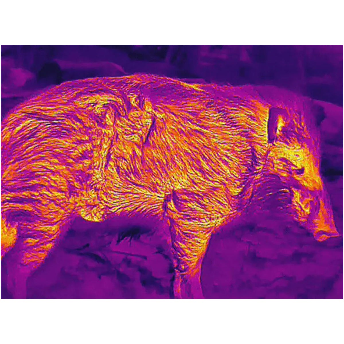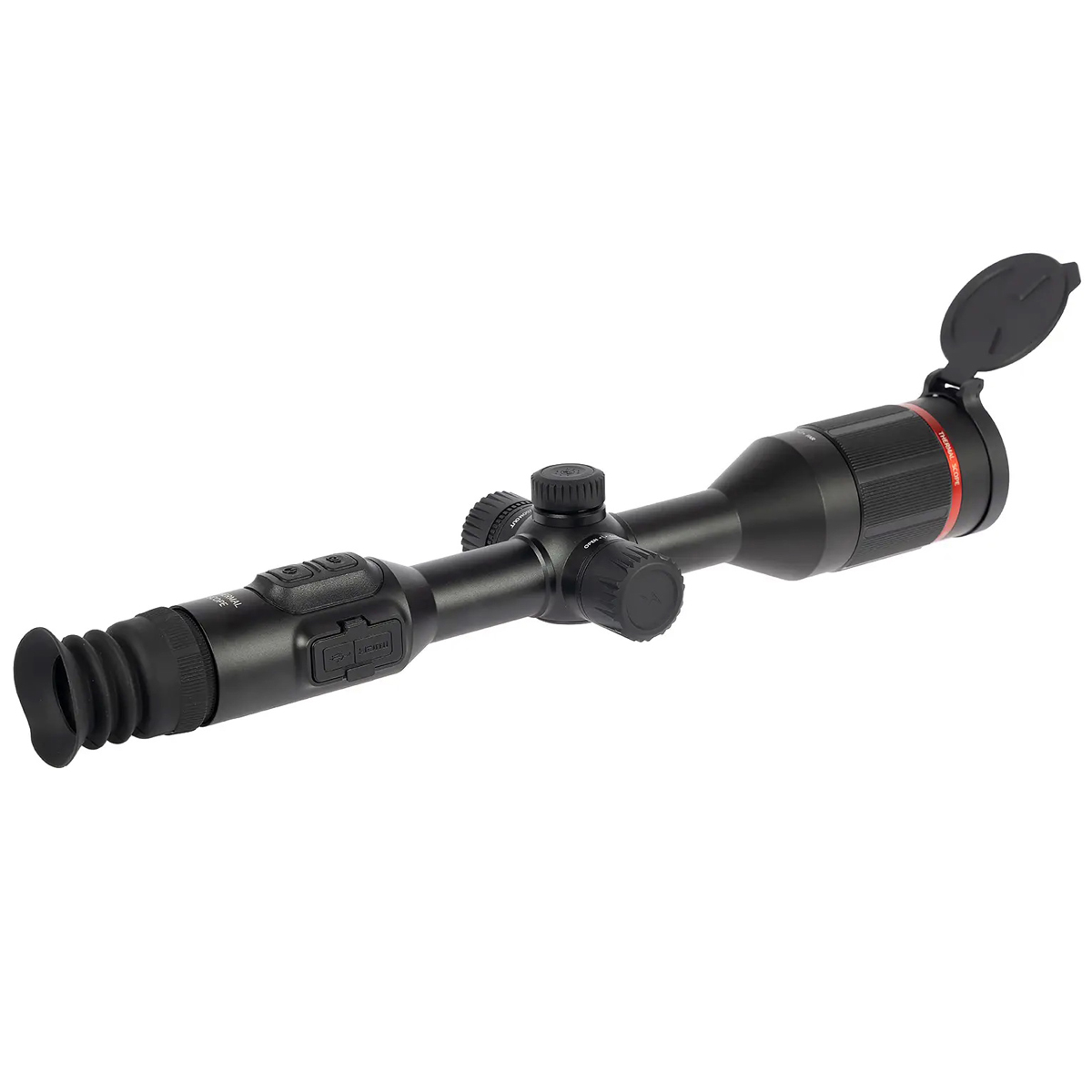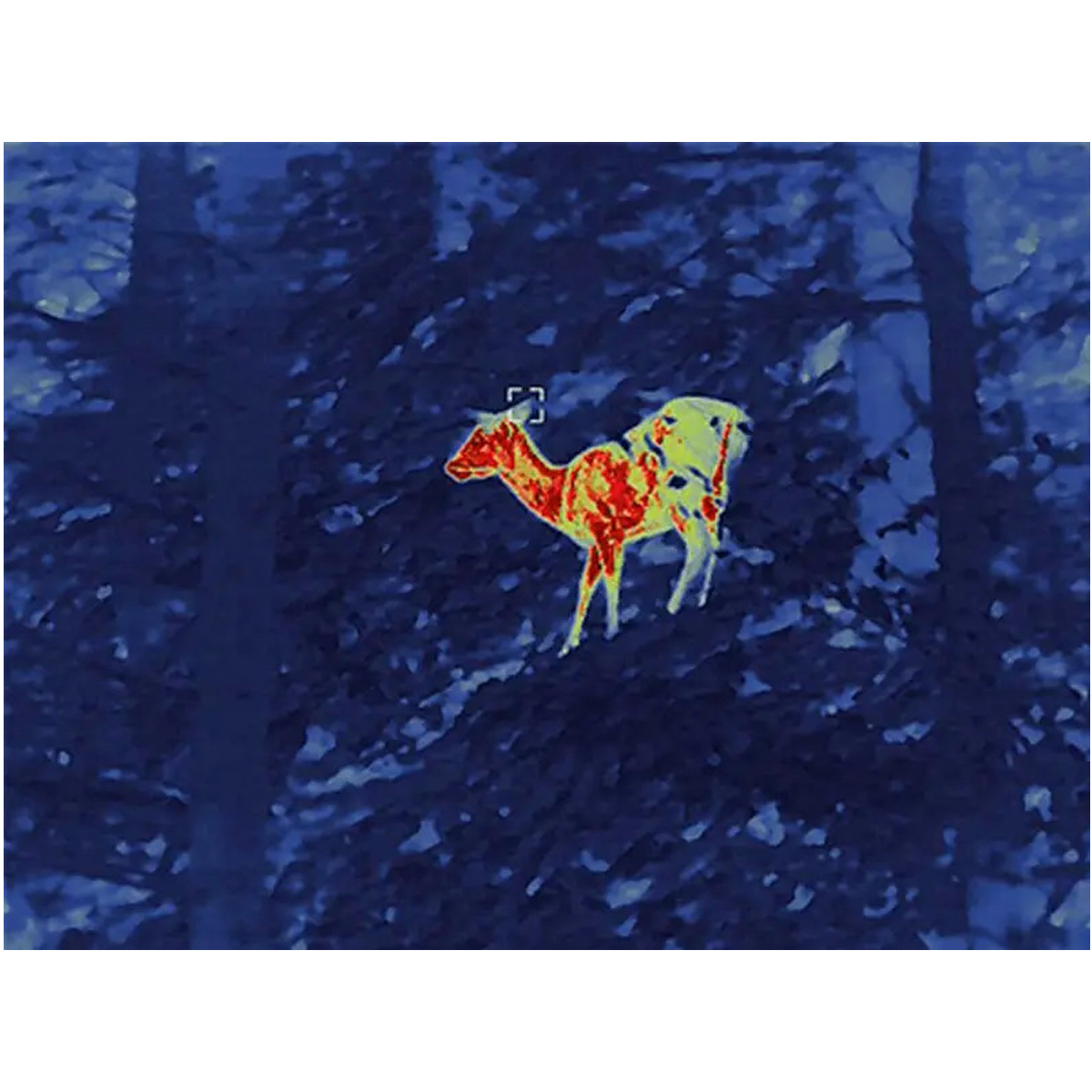 В основі тепловізора лежить сучасний тепловізійний сенсор з високою роздільною здатністю 640 x 480 пікселів та кроком пікселя всього 12 мікрометрів (12 μm). Це надає чіткість та деталізацію теплових сцен. Висока частота оновлення кадрів 60 Гц гарантує плавне зображення без затримок та ривків, що є критично важливим під час спостереження за об'єктами, які швидко рухаються. Сенсор працює у довгохвильовому інфрачервоному спектральному діапазоні (8-14 μm), що є стандартом для виявлення теплових сигнатур. Температурна чутливість (NETD) на рівні ≤30 мілікельвінів (mK) дозволяє прицілу розрізняти мінімальні різниці температур, формуючи контрастне та інформативне зображення навіть у складних погодних умовах, таких як дощ, туман або сніг. Зображення виводиться на великий та яскравий AMOLED-дисплей з роздільною здатністю 1440x1080 пікселів, який забезпечує насичені кольори та глибокий чорний колір. Комфортне для очей віддалення вихідної зіниці на 48 мм запобігає травматизму від віддачі та дозволяє комфортно використовувати приціл навіть в окулярах.