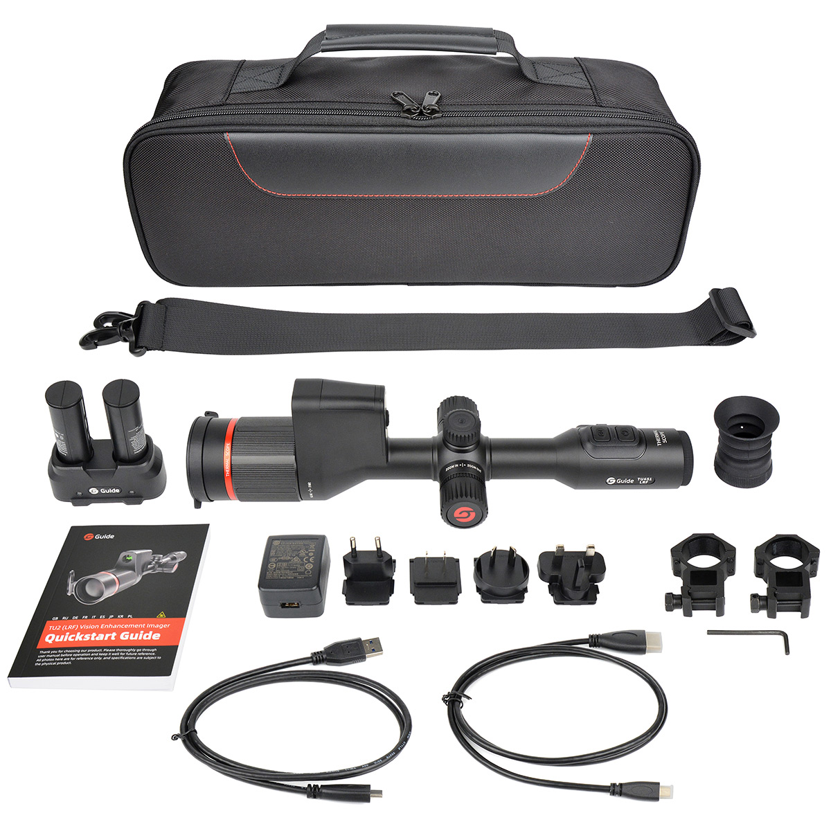 Guide TU651 LRF — флагманський тепловізійний приціл преміумкласу з матрицею високої чіткості та 50-мм об'єктивом. Пристрій виконаний по типу звичної денної оптики, що кріпиться на рейки Вівер/Пікатінні за допомогою 30-мм кілець. Модель забезпечує найвищу в серії дальність виявлення джерел тепла, яка досягає 3300 метрів. Сучасна 12µm матриця 640х480 пікселів відповідає за відмінну деталізацію тепловізійного зображення.