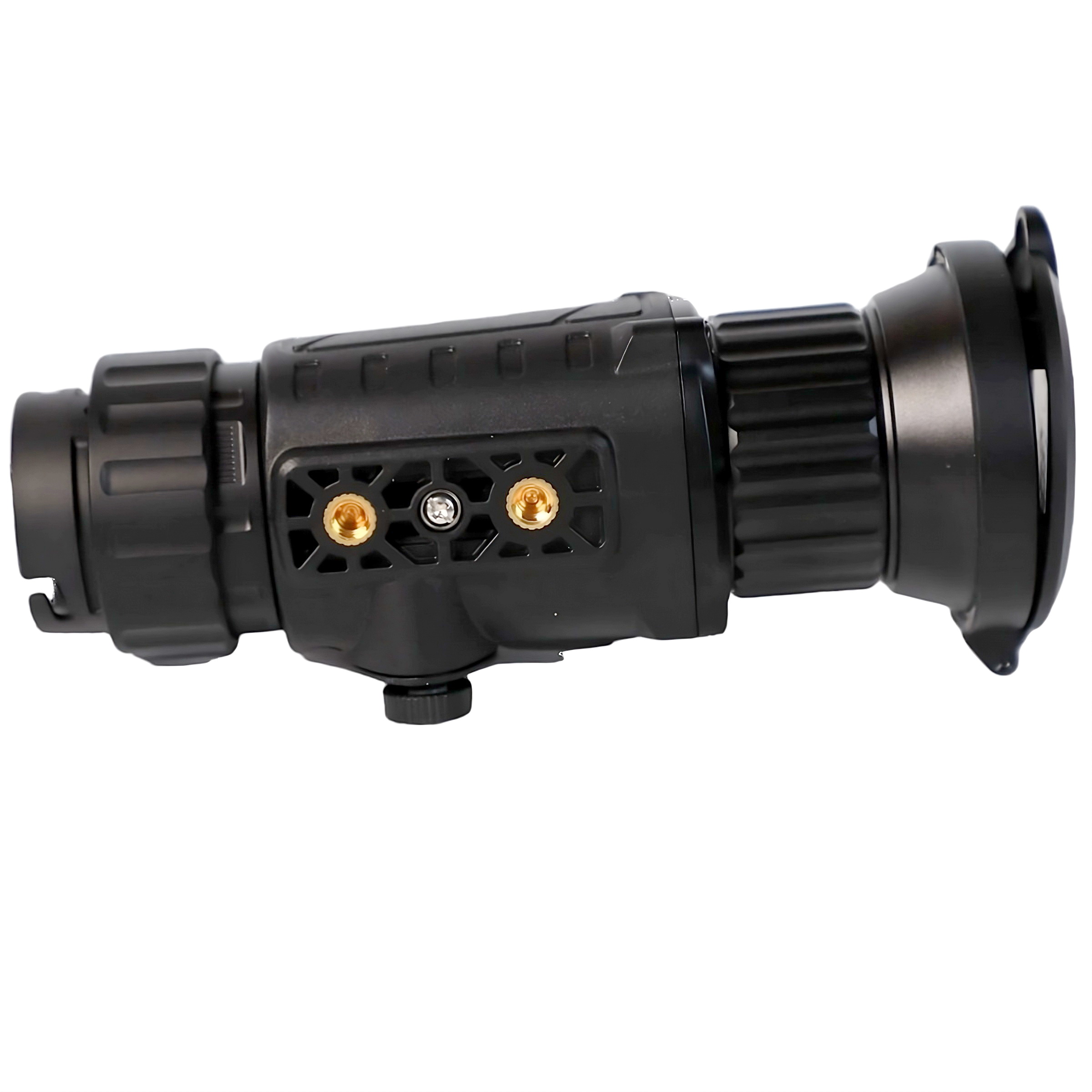 Кутове поле зору становить 8.78° x 7.03°, це створює широку панораму на середніх та великих дистанціях. У лінійному вимірі це відповідає огляду ділянки розміром 15.3 на 12.3 метра на відстані 100 метрів. Такі характеристики дозволяють стрільцю ефективно сканувати місцевість, не втрачаючи при цьому можливості сконцентруватися на конкретному об'єкті. Завдяки якісній оптиці, максимальна дистанція виявлення теплового об'єкта розміром з людину сягає 2600 метрів, перетворюючи насадку на потужний інструмент для спостережень на значних відстанях, та надаючи стрільцю тактичну перевагу.