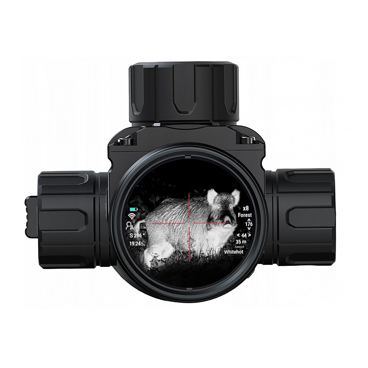 Головною інновацією цієї серії ІЧ-прицілів є круглий дисплей із лінійною роздільною здатністю 800x800 пікселів, виконаний за технологією IPS, яка відмінно себе зарекомендувала. Такий екран відповідає формі людського ока та пропонує подібний до звичайних денних прицілів досвід використання, роблячи спостереження більш природним і комфортним. Для масштабування картинки передбачено цифровий зум — 2x, 4x, 6x, 8x. Функція «Картинка в картинці» (PiP) дозволяє виводити збільшену центральну область зображення, не втрачаючи огляду загальної сцени.
