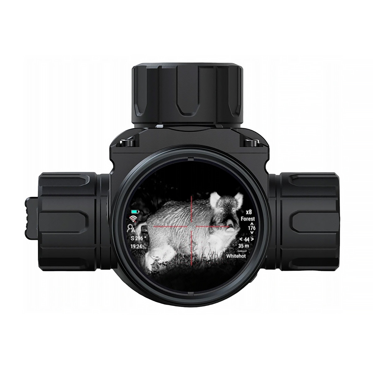 Зображення виводиться на IPS-дисплей з роздільною здатністю 800x800 пікселів, який формує чітку та природну картинку. Приціл підтримує фото- та відеозапис на карту Micro SD об’ємом до 128 Гб, має режим PiP (картинка в картинці) та функцію автоматичного запису при віддачі. Вбудовані гіроскоп, балістичний калькулятор, електронний компас і режим Hot Track суттєво підвищують результативність стрільби. Користувач може обрати 6 типів прицільних сіток з підсвіткою у чотирьох кольорах (червоний, білий, жовтий, зелений), шість колірних палітр (White Hot, Black Hot, Edge, Red Hot, Iron Hot, Sky) та спеціальні сценарні режими «Місто», «Дощ» і «Ліс». Діоптрійна корекція доступна в діапазоні +3 / -5.