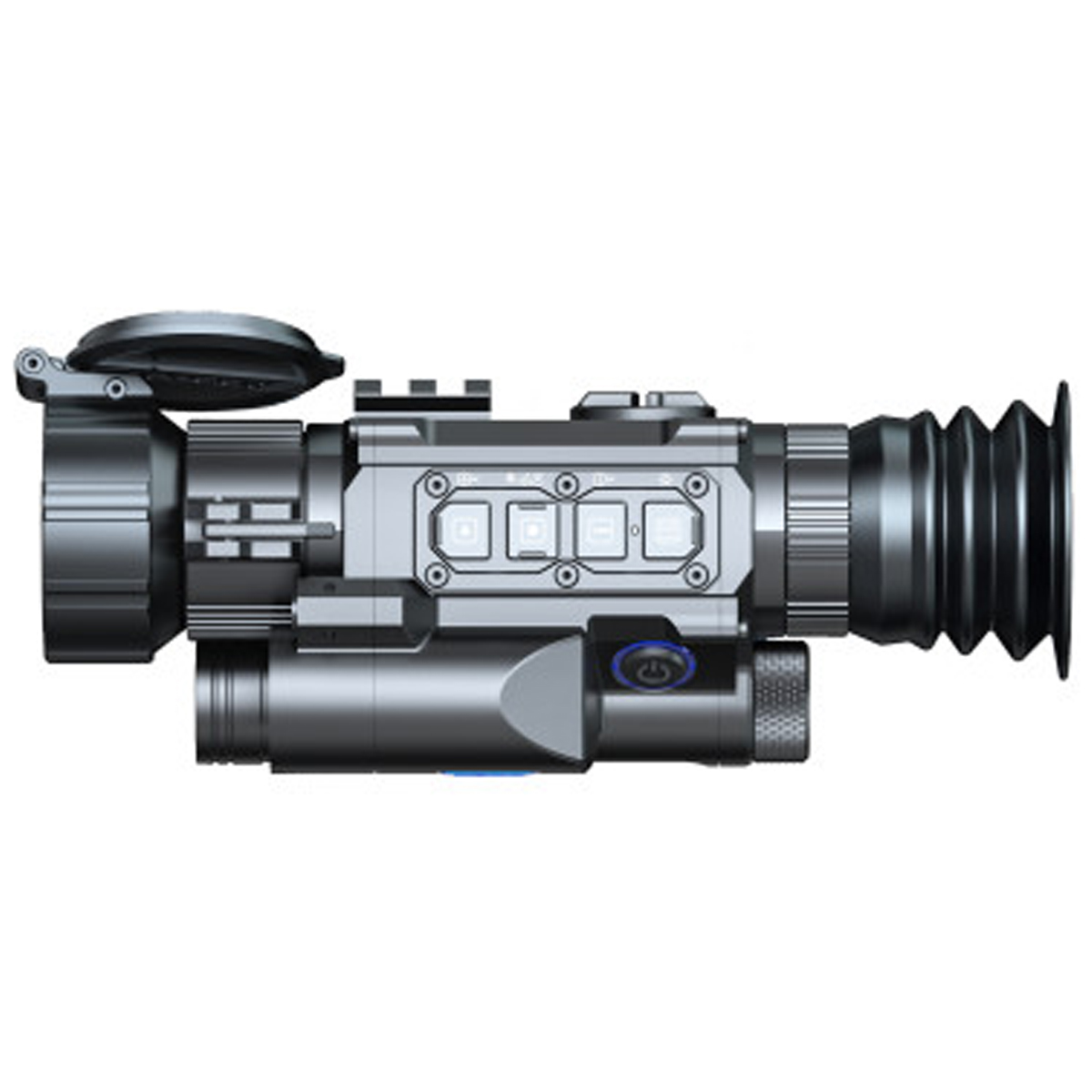 Корпус прицілу виготовлений з міцного та легкого алюмінієвого сплаву, вага приладу становить 455 грамів. Він має клас захисту IP67, гарантуючи повну пило та водонепроникність. Ударостійкість у 6000 Дж дозволяє встановлювати приціл на зброю великих калібрів. Живлення здійснюється одним змінним акумулятором формату 18650, що дає до 5 годин автономної роботи. Для зберігання даних передбачений слот для карти пам'яті об'ємом до 128 Гб. Сучасний роз'єм USB Type-C служить для зарядки та передачі файлів. Вбудоване кріплення під планку Weaver/Picatinny забезпечує швидкий та надійний монтаж.
