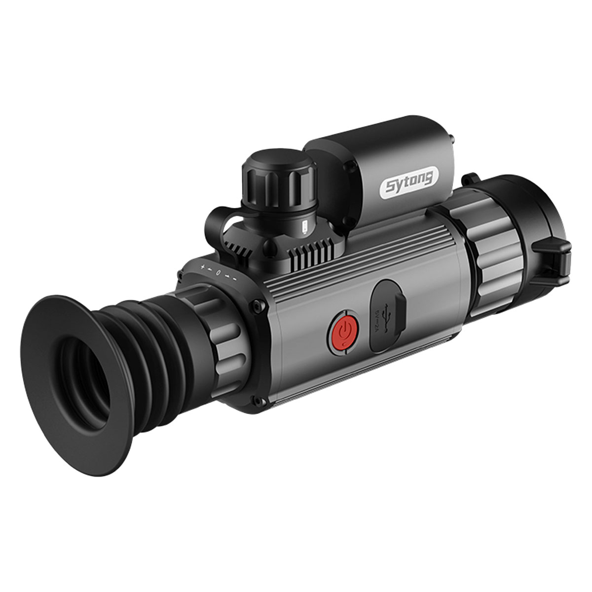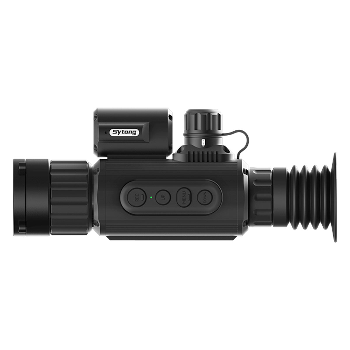 Sytong AM03-35 LRF (з далекоміром) – це компактний тепловізійний приціл з вбудованим лазерним далекоміром для виявлення людини на відстані до 1750 м. Відстань вимірювання далекоміра може досягати 800 м з похибкою до 1 м.