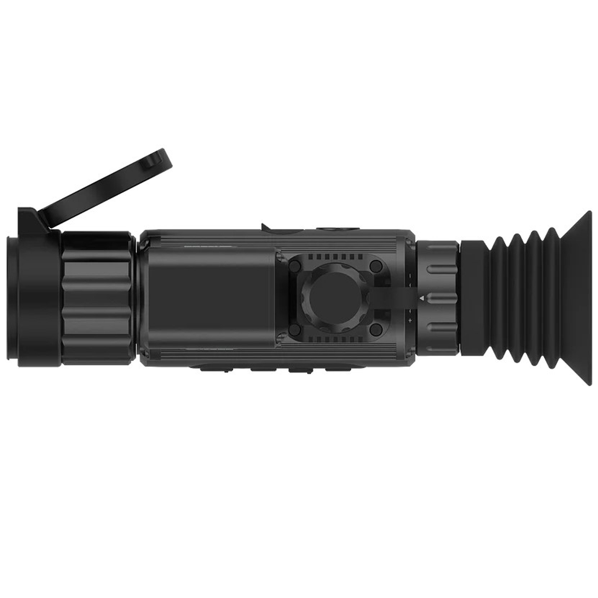 В основі роботи прицілу — неохолоджуваний сенсор VOx з роздільною здатністю 640×512 пікселів. Крок пікселя 12 μm у поєднанні з частотою оновлення 50 Гц забезпечують плавне відображення рухомих об’єктів. Показник теплової чутливості NETD ≤18 mK дозволяє фіксувати мінімальні температурні відмінності, формуючи контрастну та насичену картинку навіть за складних погодних умов — у дощ або туман.
