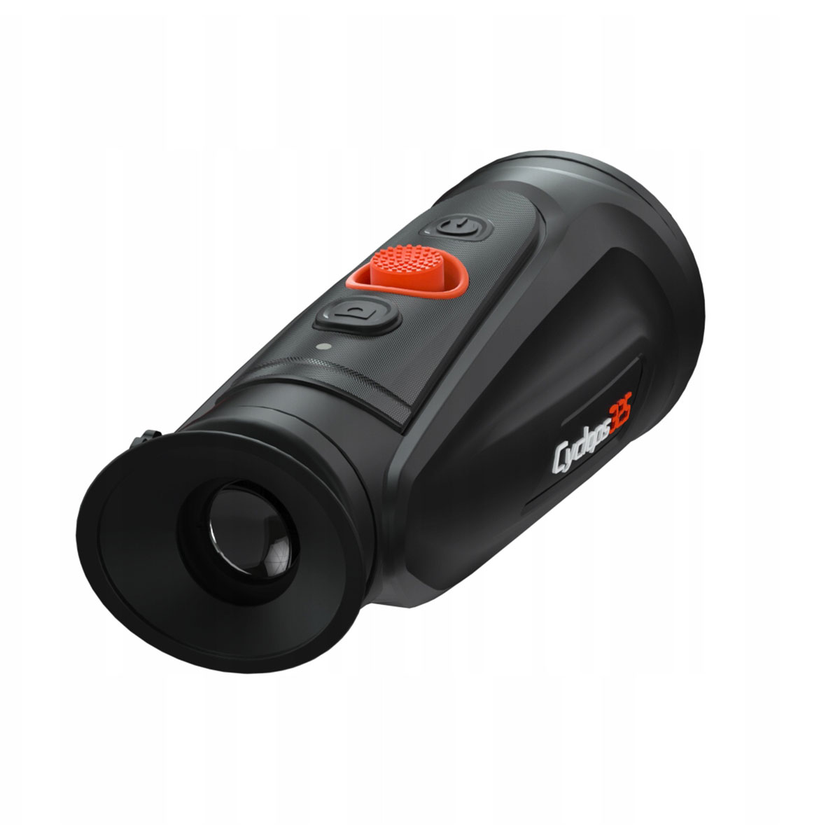 Тепловізор ThermTec (ThermEye) Cyclops 325 – невеликий кишеньковий пристрій, який має дуже високий рівень автономності, зручну ергономіку та дозволяє сканувати великі області протягом тривалого часу без будь-якого дискомфорту. Лінійне поле зору на 100 м по горизонталі та вертикалі становить відповідно 18.4 x 13.8 метрів, що добре підходить для спостережень на середніх дистанціях.