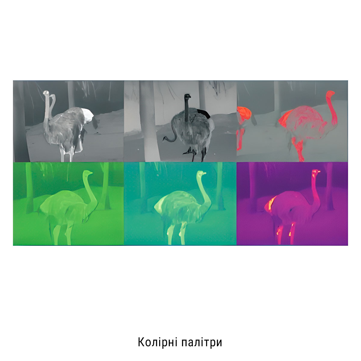 Доступні шість варіантів колірних палітр: white hot, black hot, red hot, purple, green, gold.