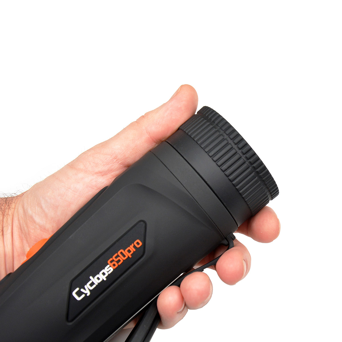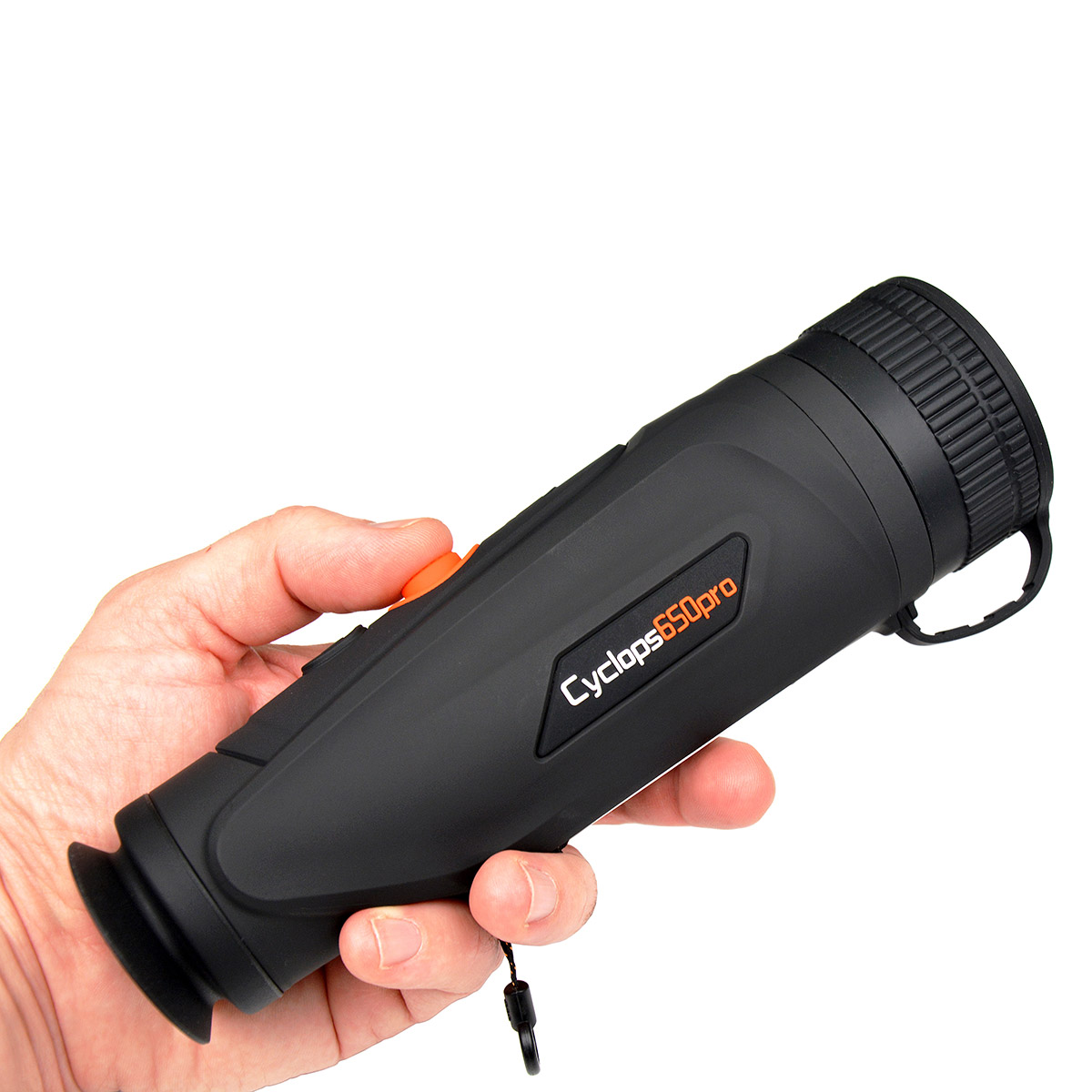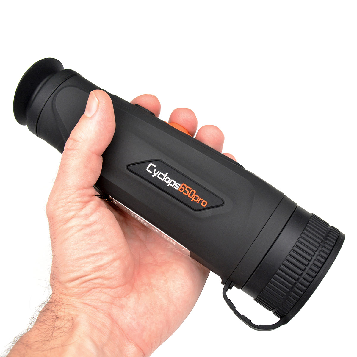 Cyclops 650 PRO — універсальний тепловізор для військових, мисливців і рятувальників. Завдяки потужному об'єктиву та сенсору, прилад дозволяє бачити навіть найменші джерела тепла. Один з найкращих тепловізорів у своїй ціновій категорії.